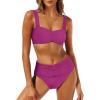 imageANRABESS Womens Bikini Set Tummy Control Push Up Two Piece Swimsuit 2025 Front Ruched Adjustable Strap Mid Waist Bathing SuitRed
