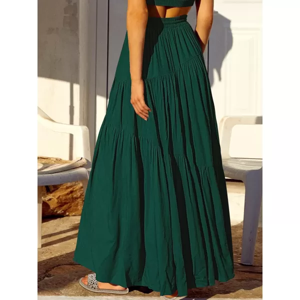 ANRABESS Women’s Boho Elastic High Waist Pleated A-Line Flowy Swing Asymmetric Tiered Maxi Long Skirt Dress with Pockets(Deep Green)