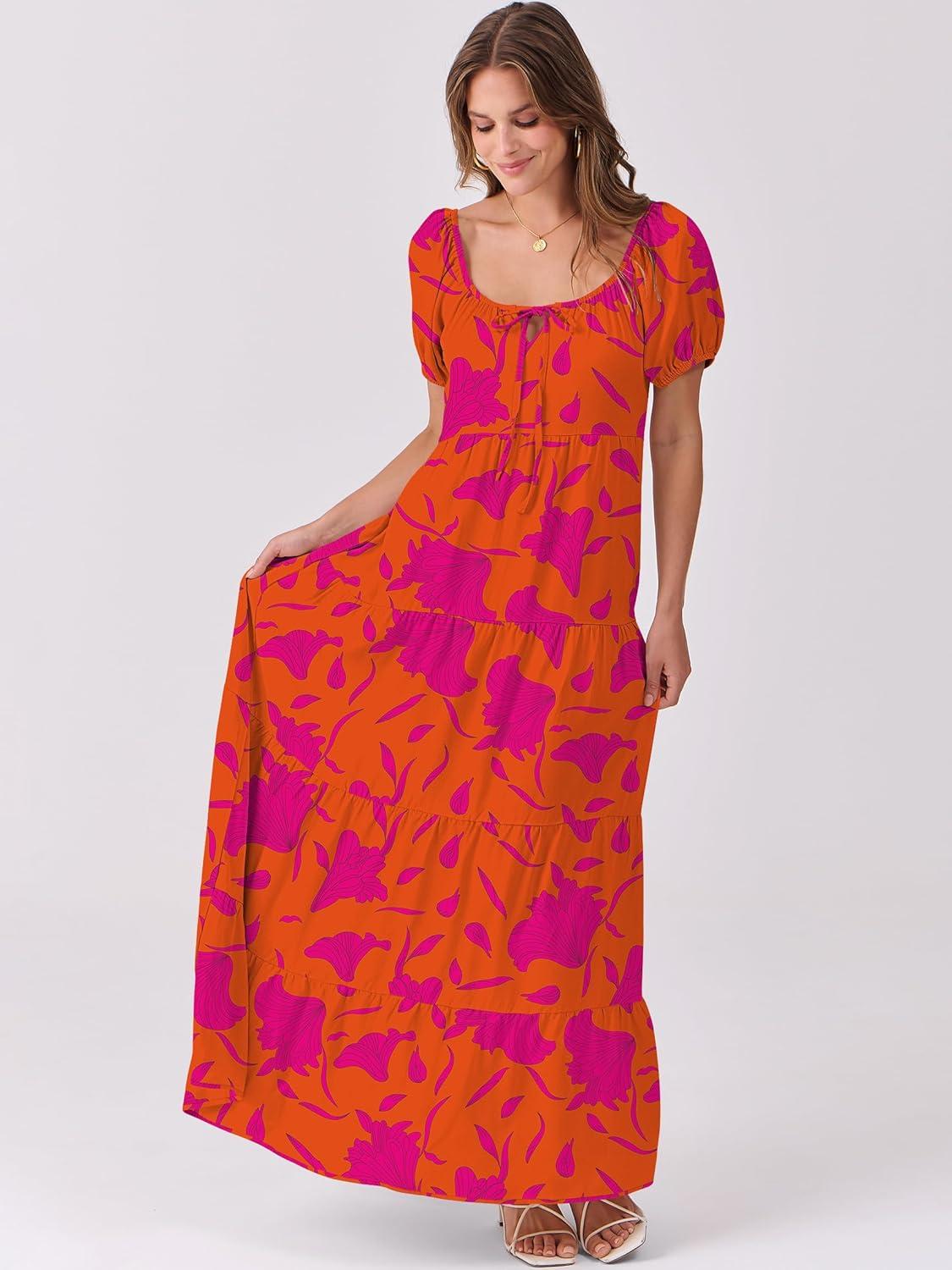 Discover the latest ANRABESS Women’s Boho Maxi Dresses 2025 Summer Casual Floral Puff Short Sleeve Tie Front Flowy Swing Tiered Long Beach Dress(Orange Rose Floral) from and take advantage of our limited-time introductory offer.