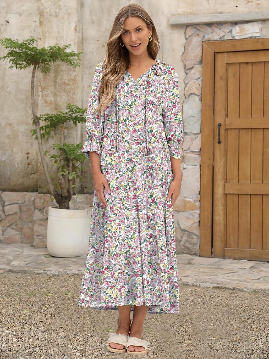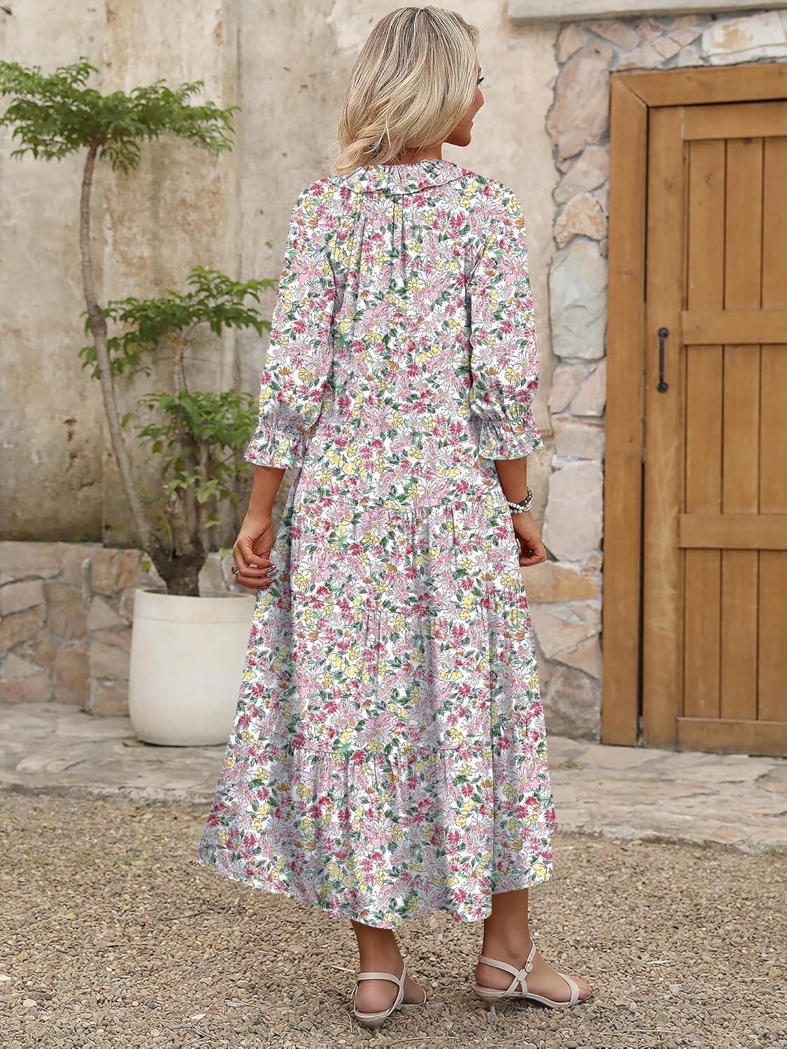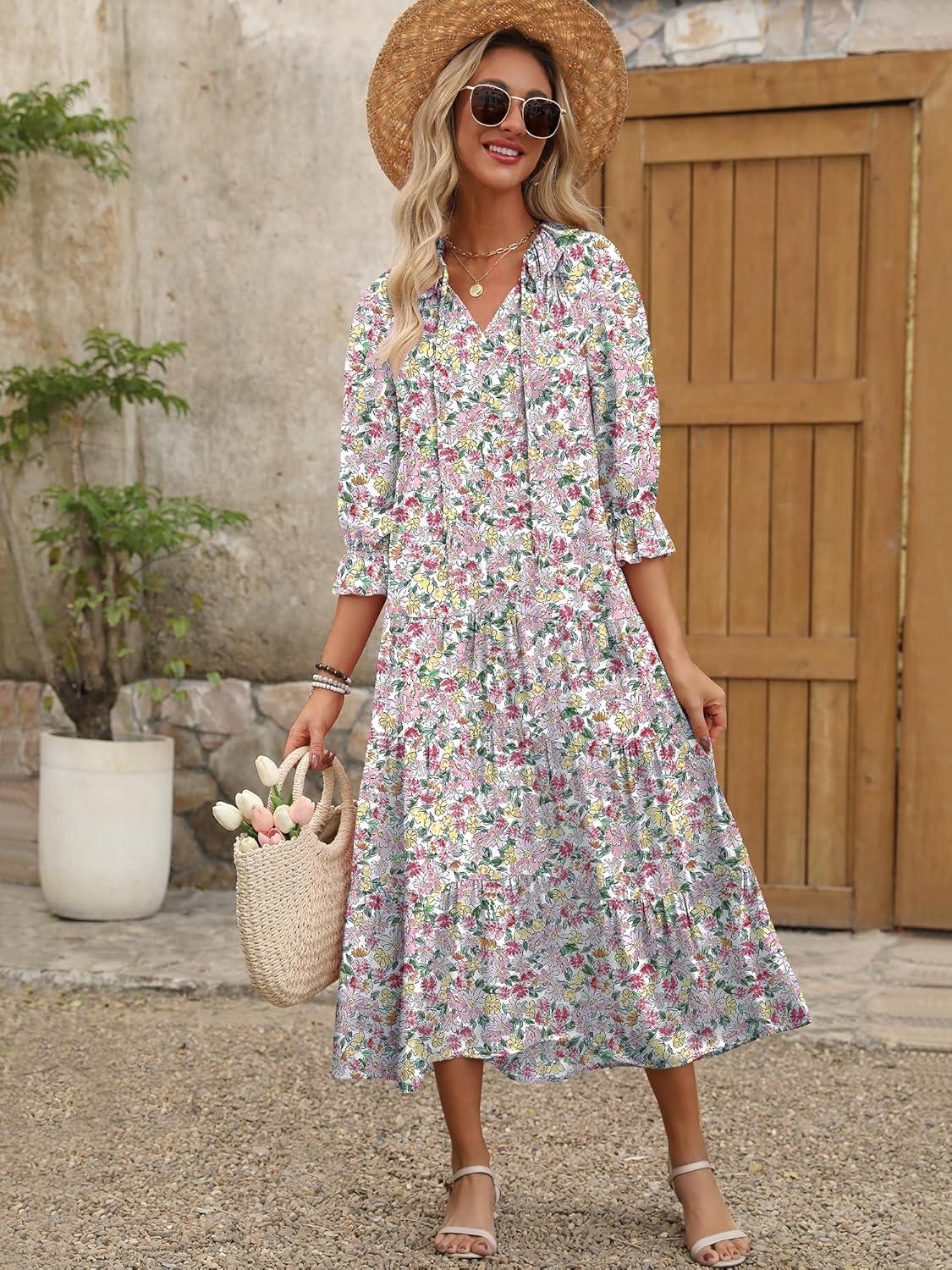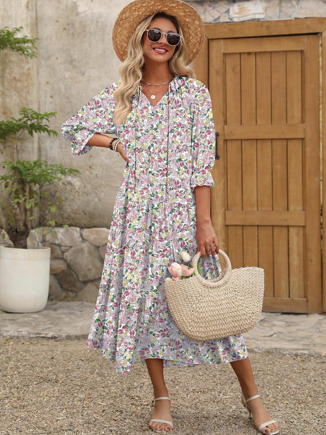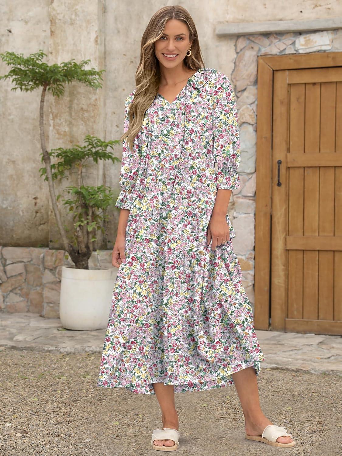Be the first to review “ANRABESS Women’s Boho Maxi Dresses 2025 Summer Casual V Neck Puff Sleeve Floral Tiered Flowy Swing Beach Vacation Long Dress(Floral Red Yellow)”