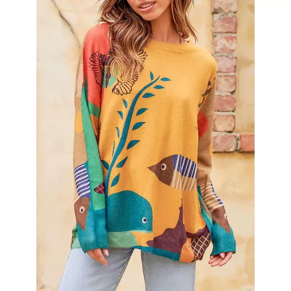 ANRABESS Women's Boho Sweater Long Sleeve Crewneck Casual Loose Oversized Graphic Pullover Sweater Top(Graphic 07)