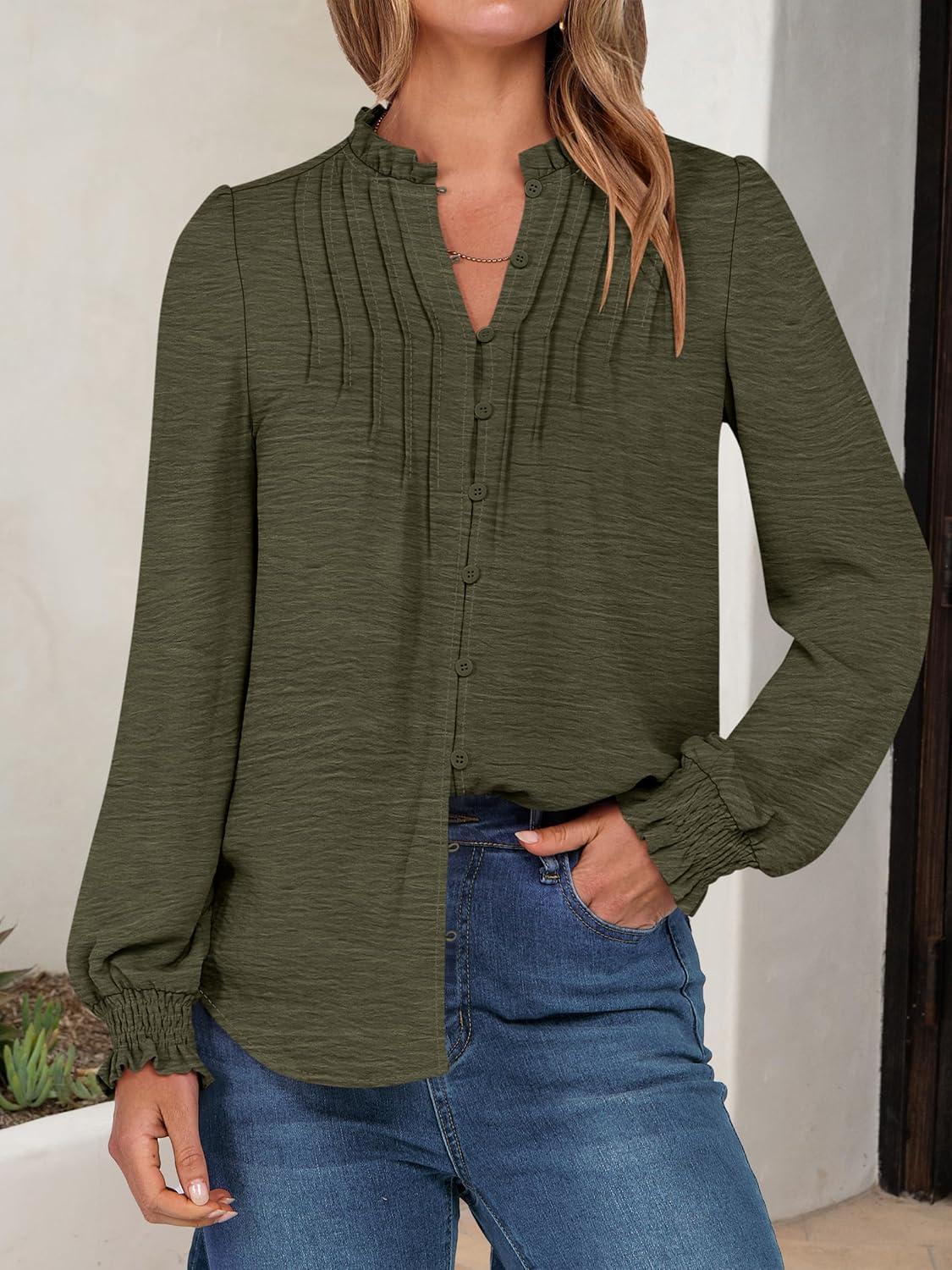 Our clearance event features the best deals on ANRABESS Womens Button Down Shirts Long Sleeve Pleated Flowy Blouses Work Business Casual Dressy Tops 2025 Fall Outfits(Army Green) and accessories. Shop now!