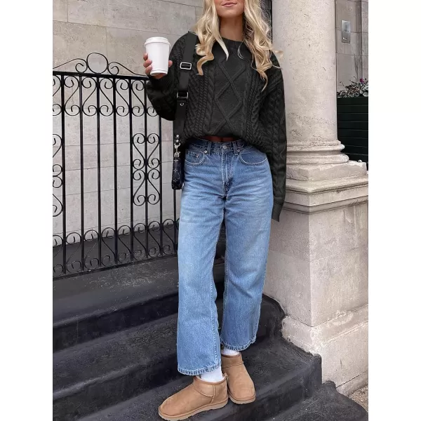 ANRABESS Women’s Cable Knit Sweater Winter Fashion Oversized Long Sleeve Crewneck Chunky Vintage Casual Loose Pullover Tops(Black)
