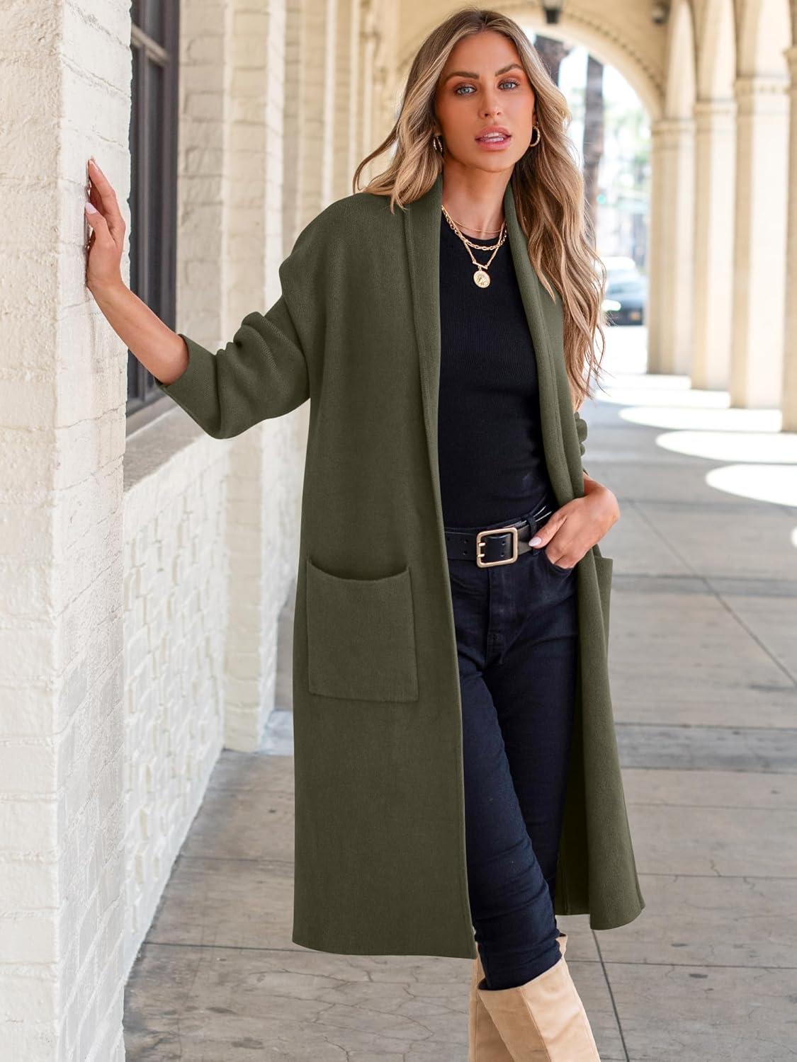 ANRABESS Women's Cardigan Long Sweater Oversized Open Front Knit Duster Coat 2024 Trendy Lady Fall Coatigan Outerwear(Green)