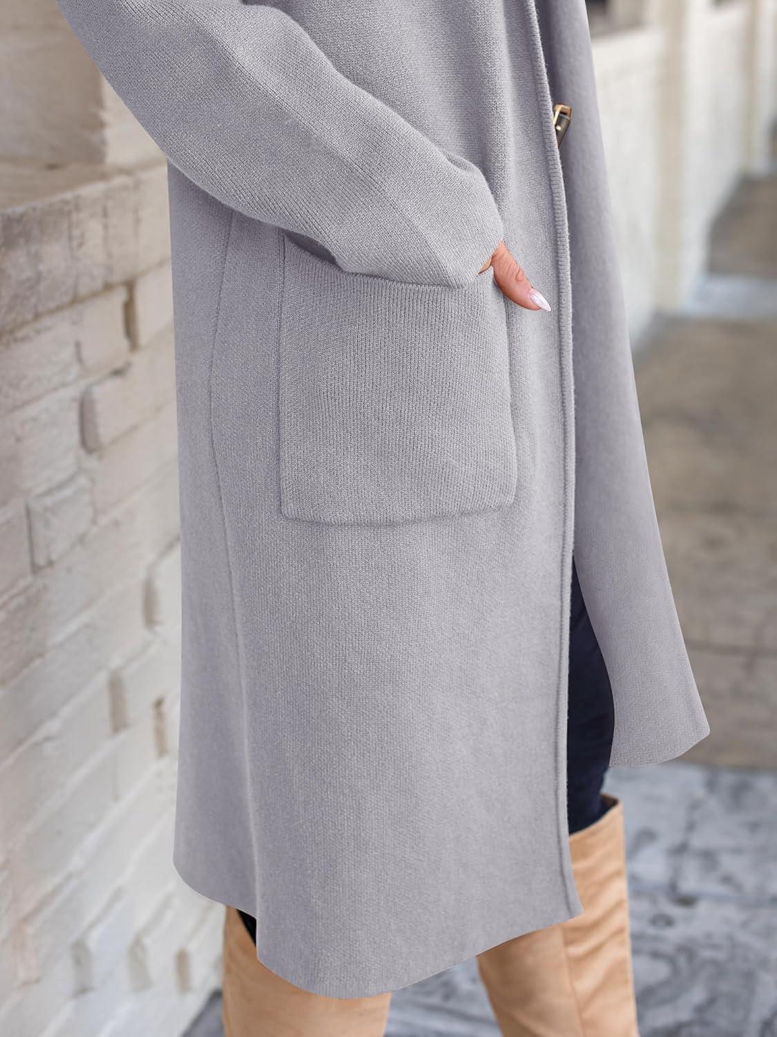 ANRABESS Women's Cardigan Long Sweater Oversized Open Front Knit Duster Coat 2025 Trendy Lady Fall Coatigan Outerwear(Light Grey)