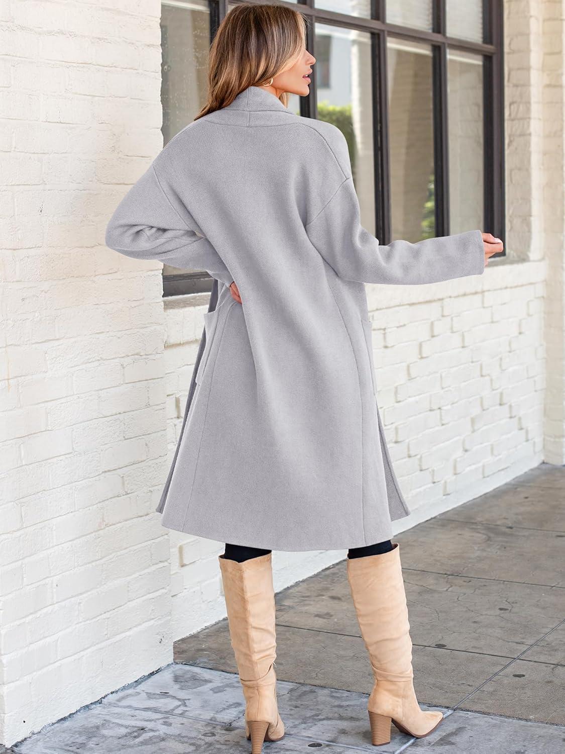 ANRABESS Women’s Cardigan Long Sweater Oversized Open Front Knit Duster Coat 2025 Trendy Lady Fall Coatigan Outerwear(Light Grey)
