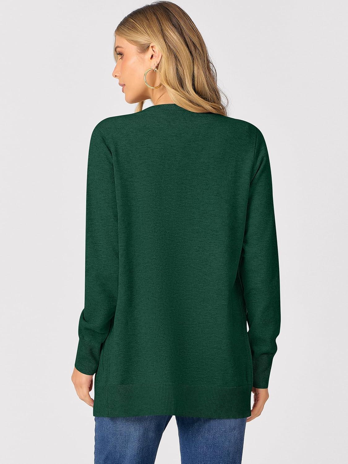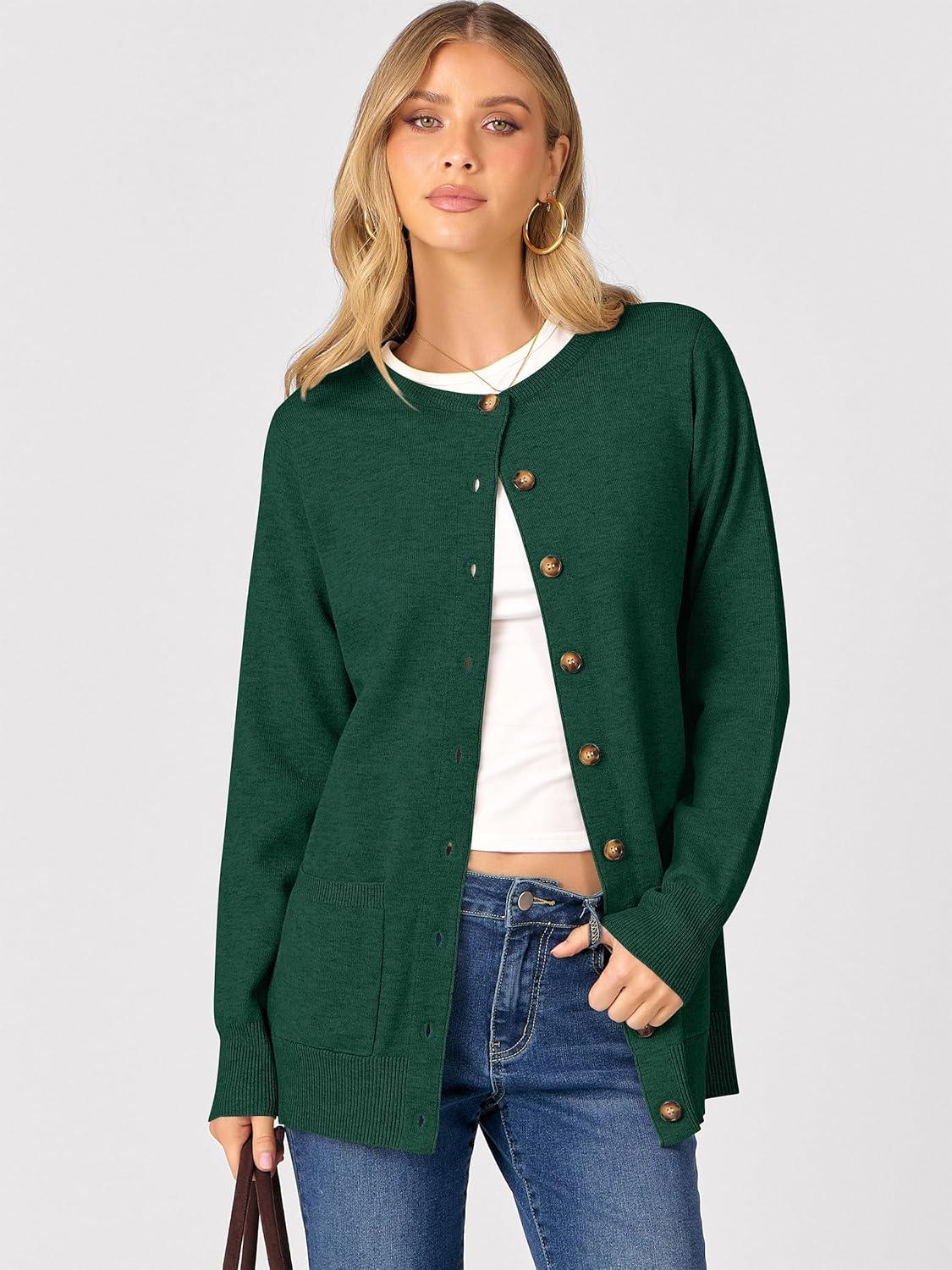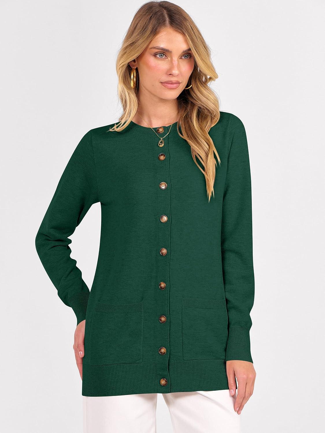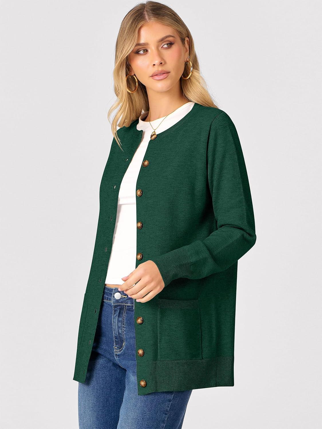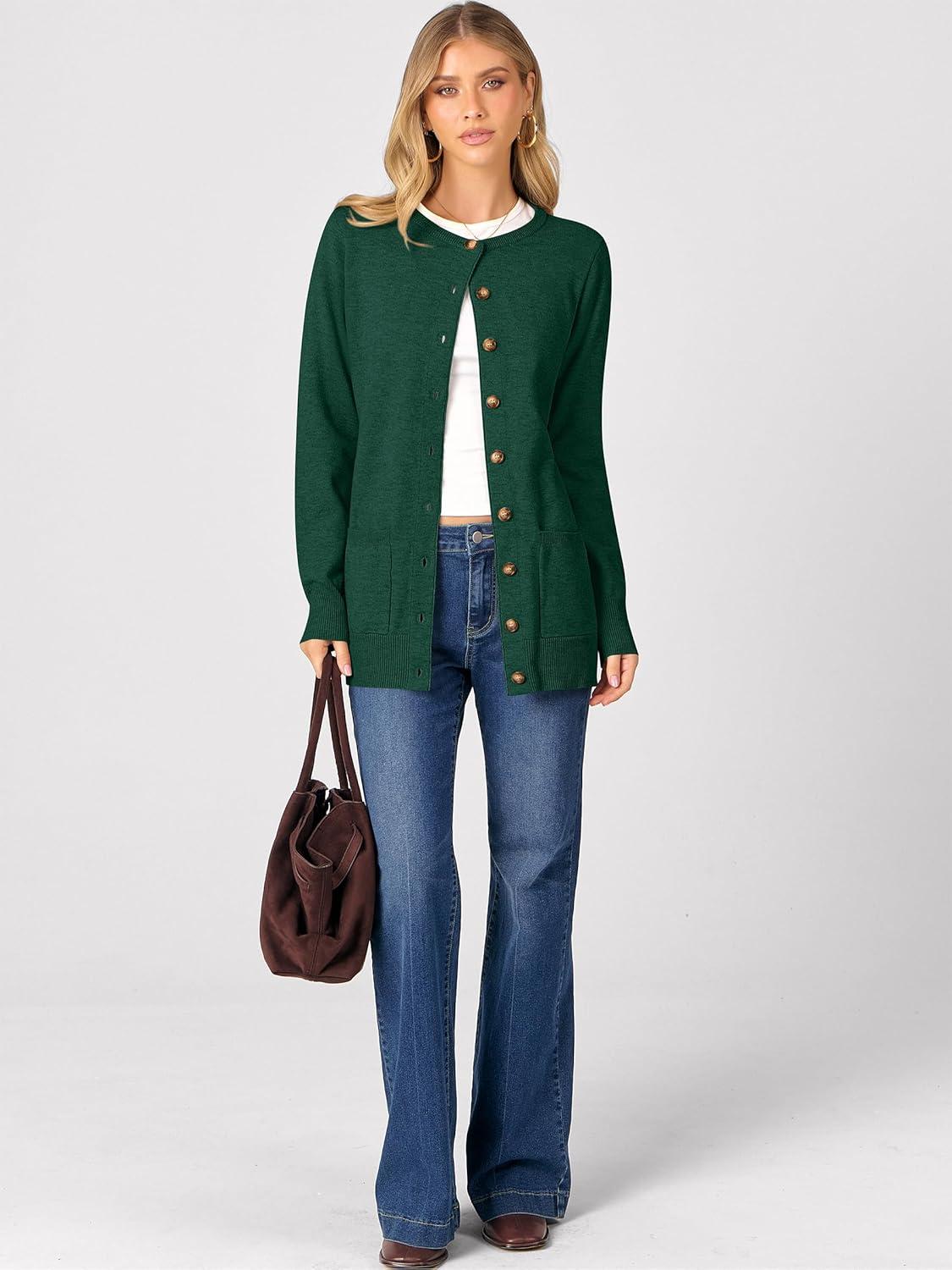 ANRABESS Women’s Cardigans 2025 Fall Dressy Casual Long Sleeve Crewneck Button Down Open Front Soft Knit Cardigan Sweaters(Forest Green)