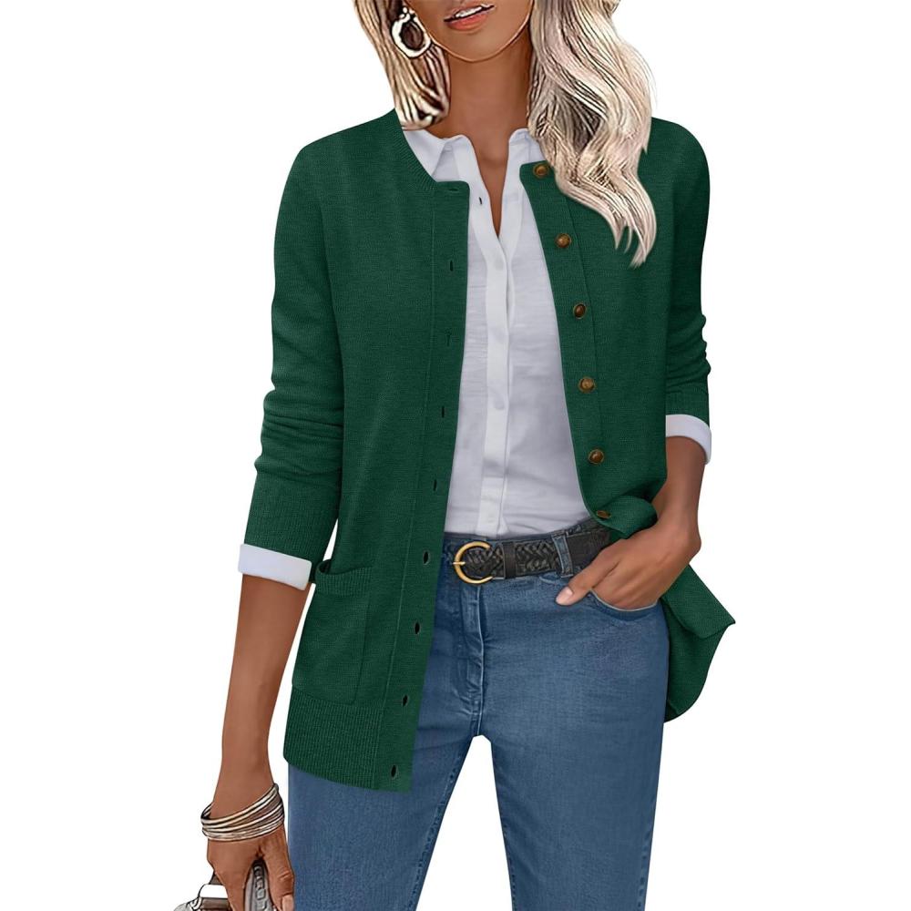 ANRABESS Women's Cardigans 2025 Fall Dressy Casual Long Sleeve Crewneck Button Down Open Front Soft Knit Cardigan Sweaters(Forest Green)