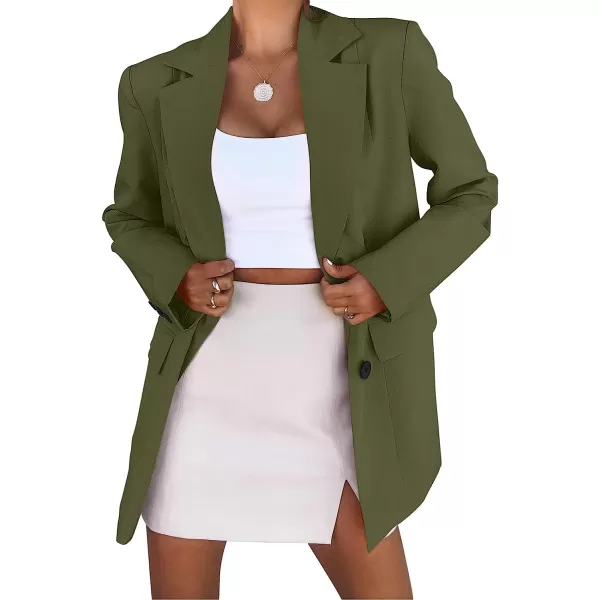 imageANRABESS Womens Casual Button Long Sleeve Lapel Open Front Pad Shoulder Office Blazer Jacket Work SuitForest