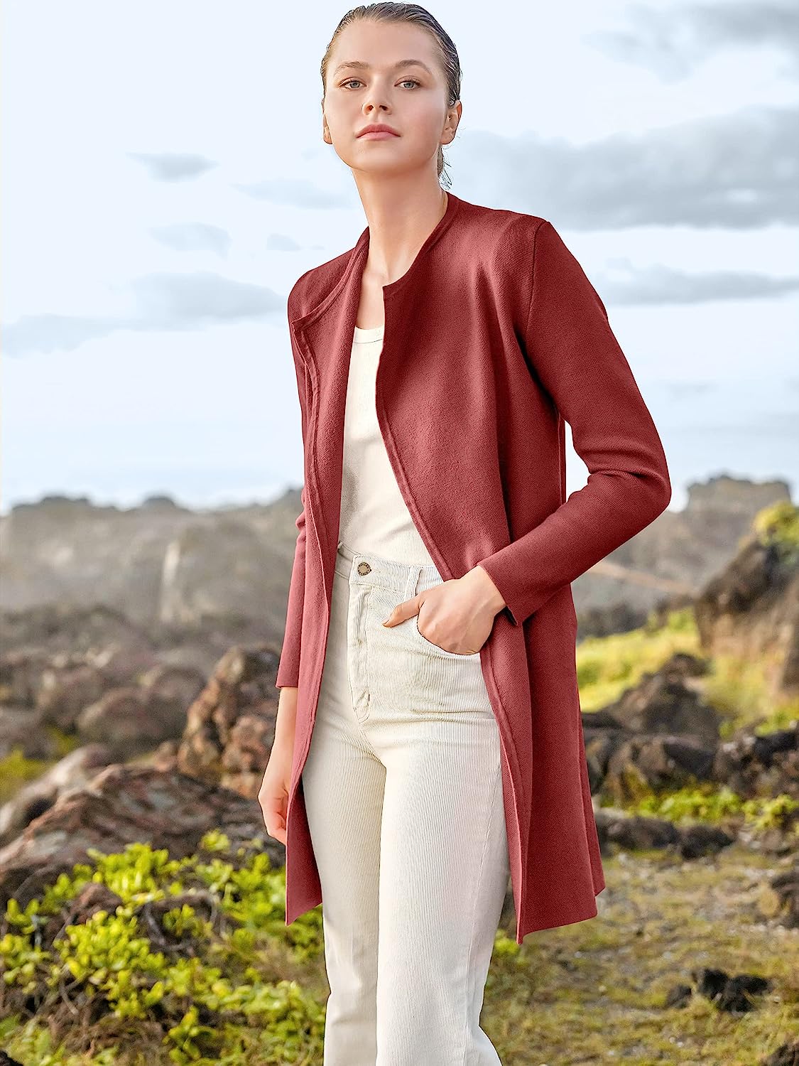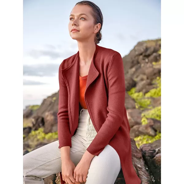 ANRABESS Women's Casual Long Sleeve Classy Draped Open Front Jackets Long Knitted Cardigan Sweater(Rusty Red)
