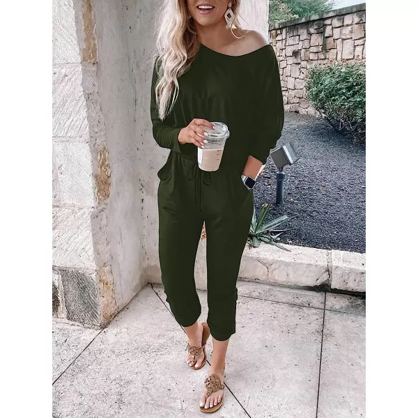 imageANRABESS Womens Casual Long Sleeve Crewneck One Off Shoulder Elastic Waist Stretchy Long Romper Jumpsuit with PocketsArmygreen