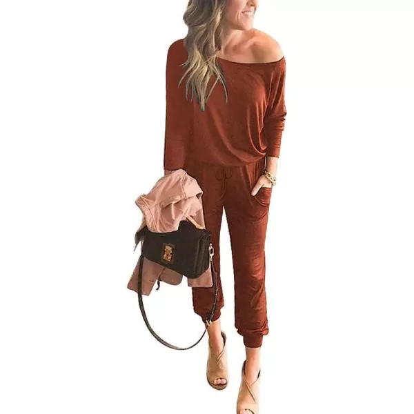 Design:Casual, elastic waist, one piece, one shoulder off, crew neck, long sleeves, solid color, beam foot, two pockets, keyhole back, stretchy long pants jumpsuit.