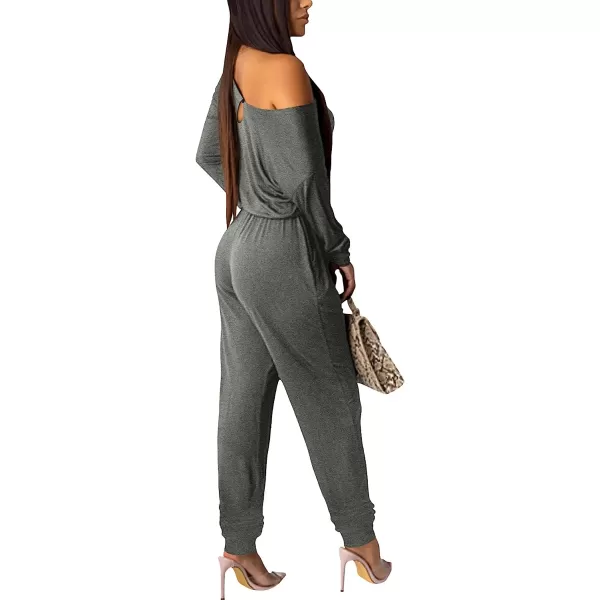 imageANRABESS Womens Casual Long Sleeve Crewneck One Off Shoulder Elastic Waist Stretchy Long Romper Jumpsuit with PocketsDeep Grey