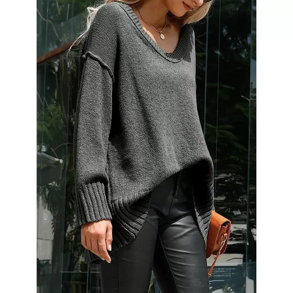 ANRABESS Women’s Casual Long Sleeve V Neck Off Shoulder Loose Baggy Comfy Knit Pullover Sweaters Tunic(Dark Gray)