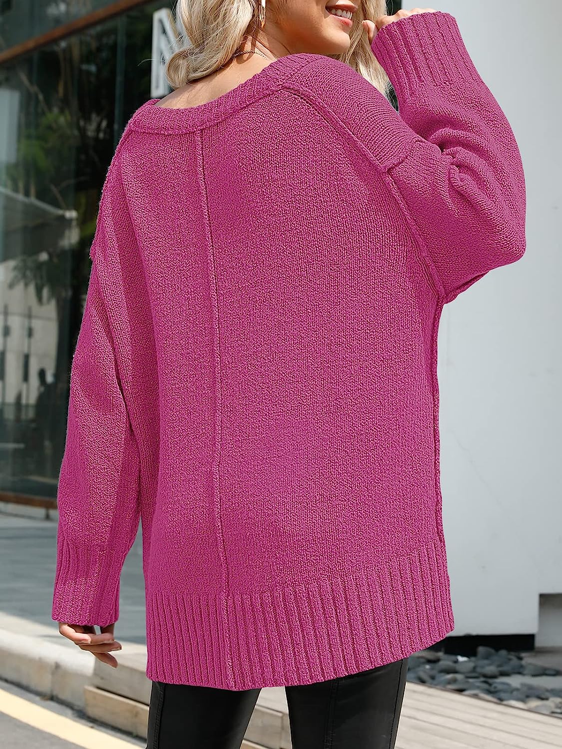 ANRABESS Women’s Casual Long Sleeve V Neck Off Shoulder Loose Baggy Comfy Knit Pullover Sweaters Tunic(Rose)