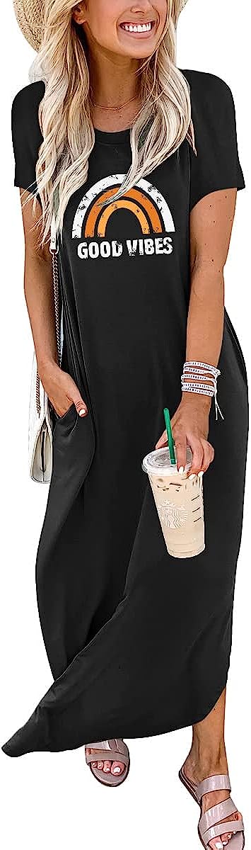 imageANRABESS Womens Casual Loose Short Sleeve Long Dress Split Maxi Summer Beach Dress with PocketsRainbow1 Black
