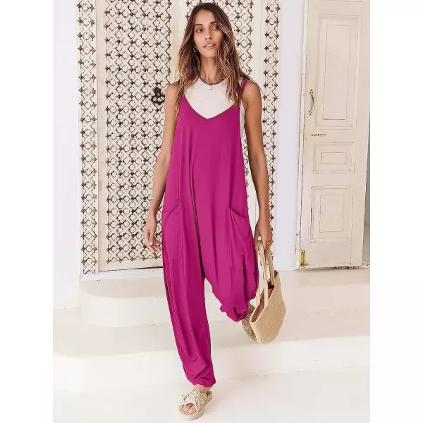 imageANRABESS Womens Casual Loose Sleeveless Jumpsuits Adjustbale Spaghetti Strap V Neck Harem Long Pants Overalls with PocketsHot Pink