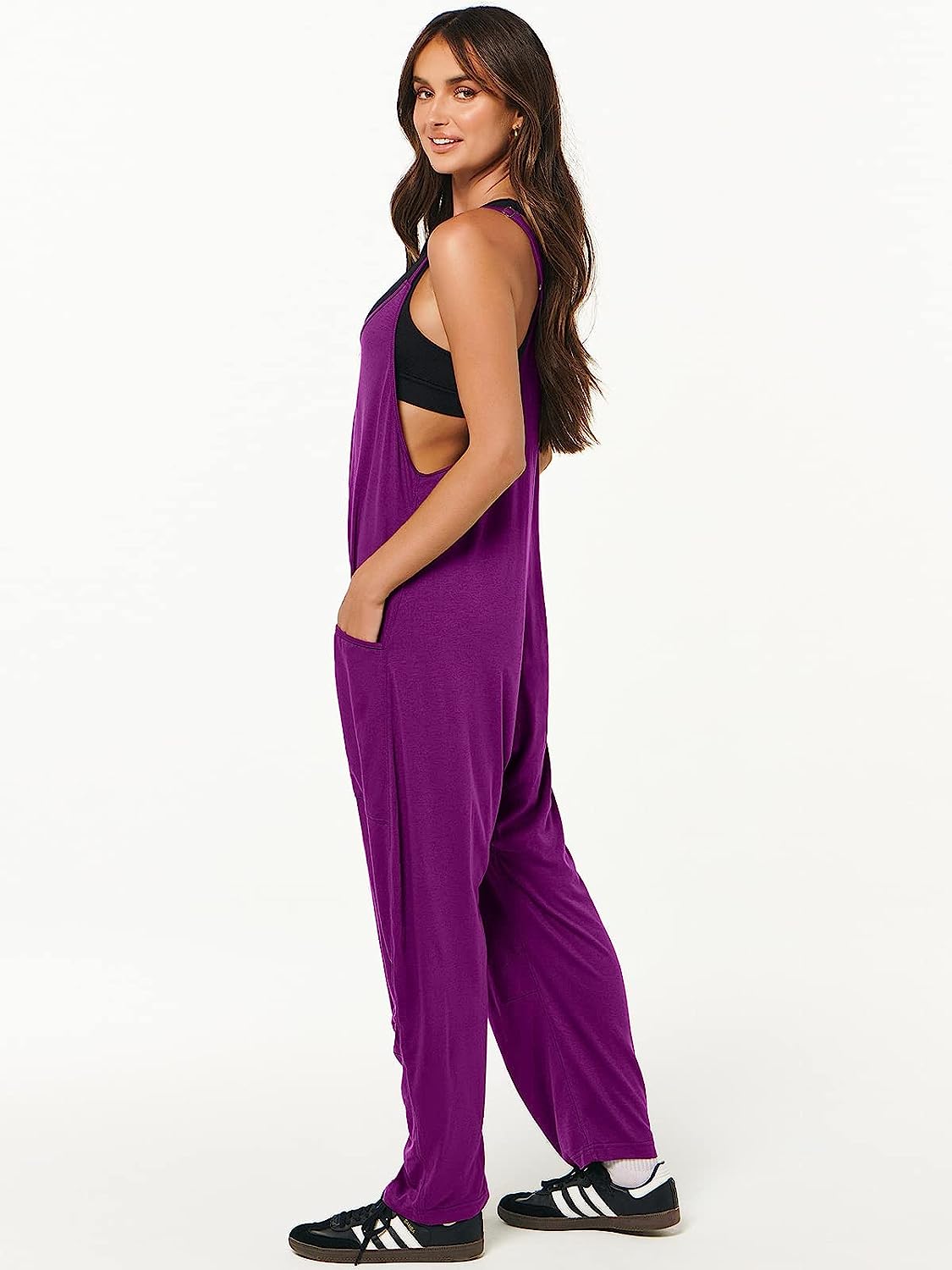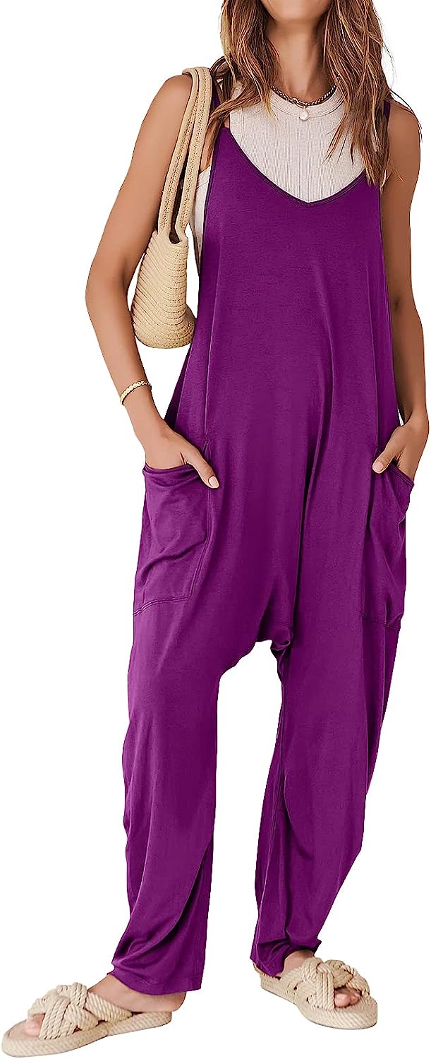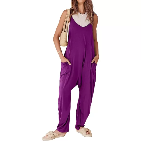 ANRABESS Women's Casual Loose Sleeveless Jumpsuits Adjustbale Spaghetti Strap V Neck Harem Long Pants Overalls with Pockets(Purpple)