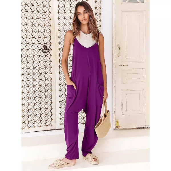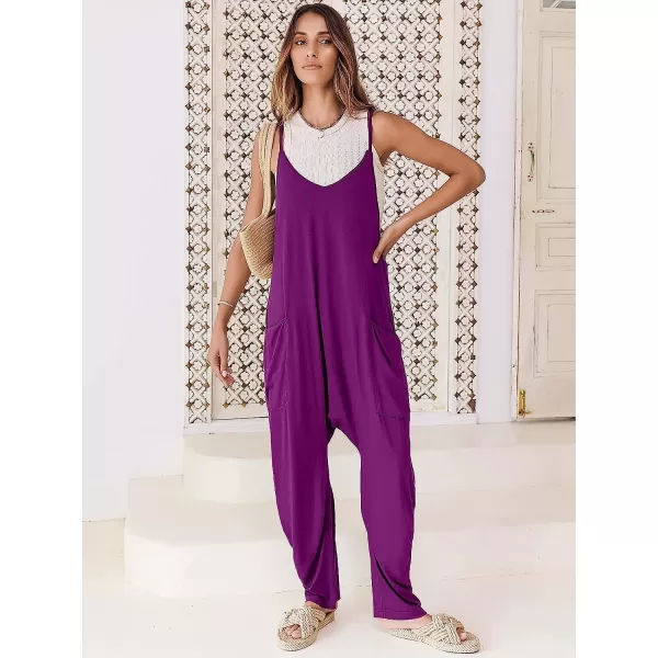 imageANRABESS Womens Casual Loose Sleeveless Jumpsuits Adjustbale Spaghetti Strap V Neck Harem Long Pants Overalls with PocketsPurpple