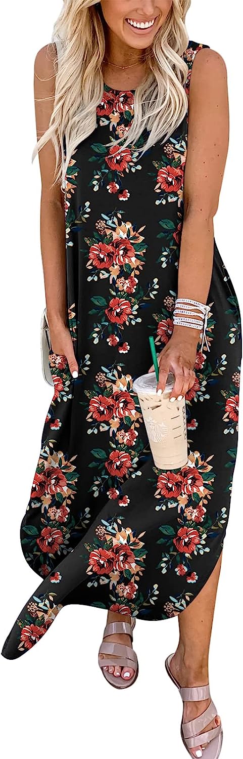 ANRABESS Women's Casual Loose Sundress Long Dress Sleeveless Split Maxi Dresses Summer Beach Dress with Pockets(Floral 05)