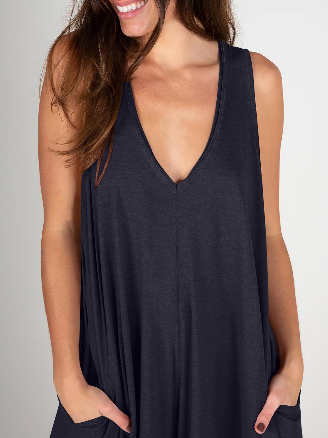 ANRABESS Women’s Casual Summer Loose Jumpsuits Sleeveless Tank V Neck Wide Leg Long Pant Rompers Baggy Jumper with Pockets(Navy Blue)