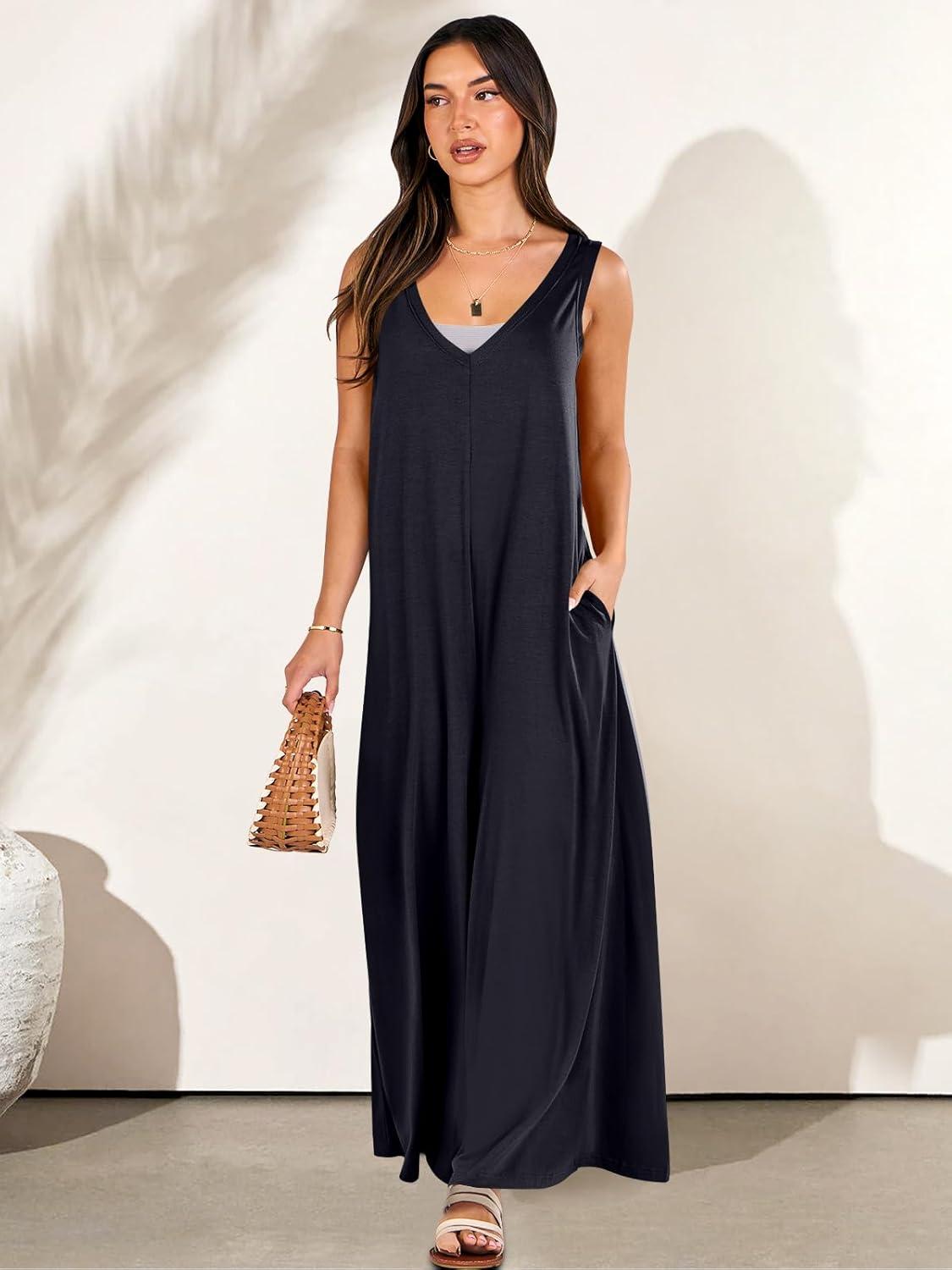 Get more for your money with our exclusive bundle deals on ANRABESS Women’s Casual Summer Loose Jumpsuits Sleeveless Tank V Neck Wide Leg Long Pant Rompers Baggy Jumper with Pockets(Navy Blue) and accessories.