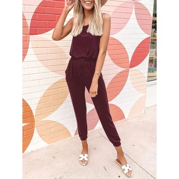 Get the ANRABESS Women’s Causal Tank Jumpsuits Sleeveless Drawstring Elastic Waist Loose Summer Romper Outfits with Pockets(01-maroon) you want at a price you can afford with our markdown sale.