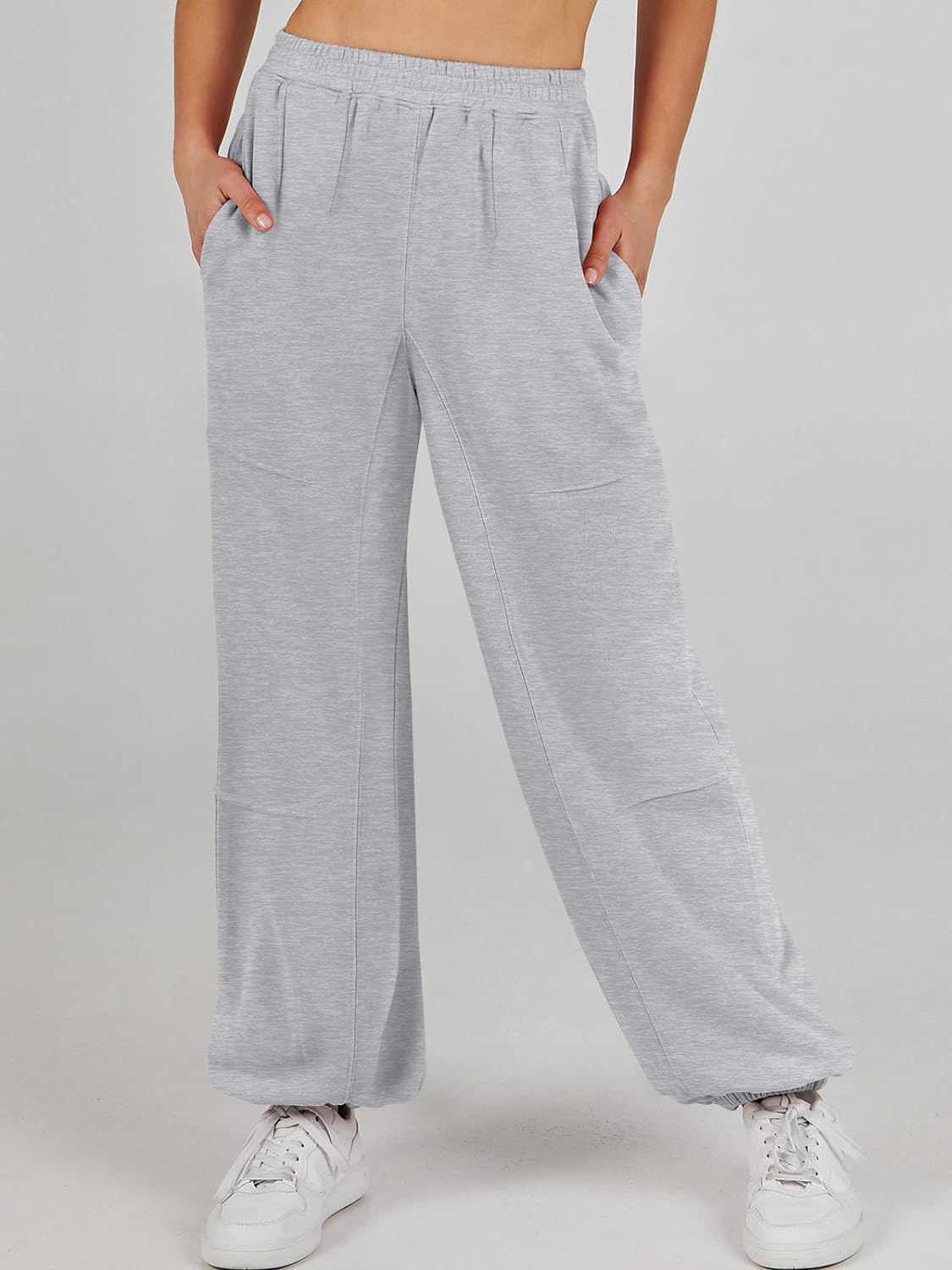 ANRABESS Women’s Cinch Bottom Sweatpants High Waisted Athletic Joggers Sweat Pants(Gray)