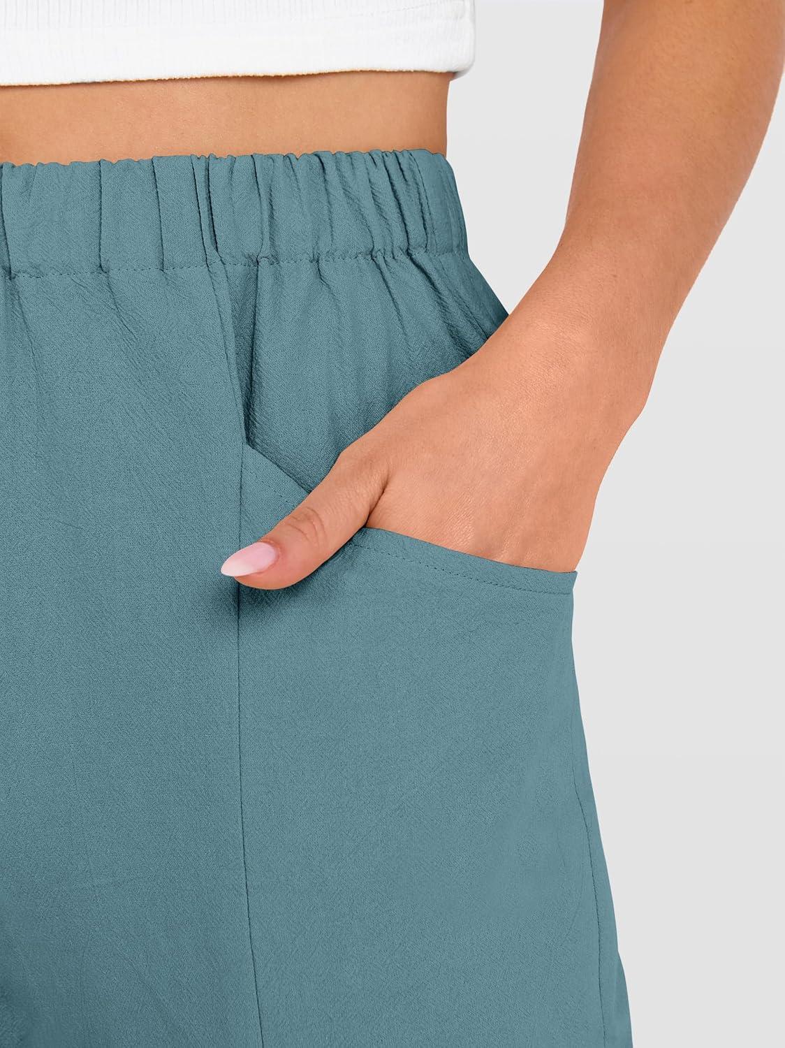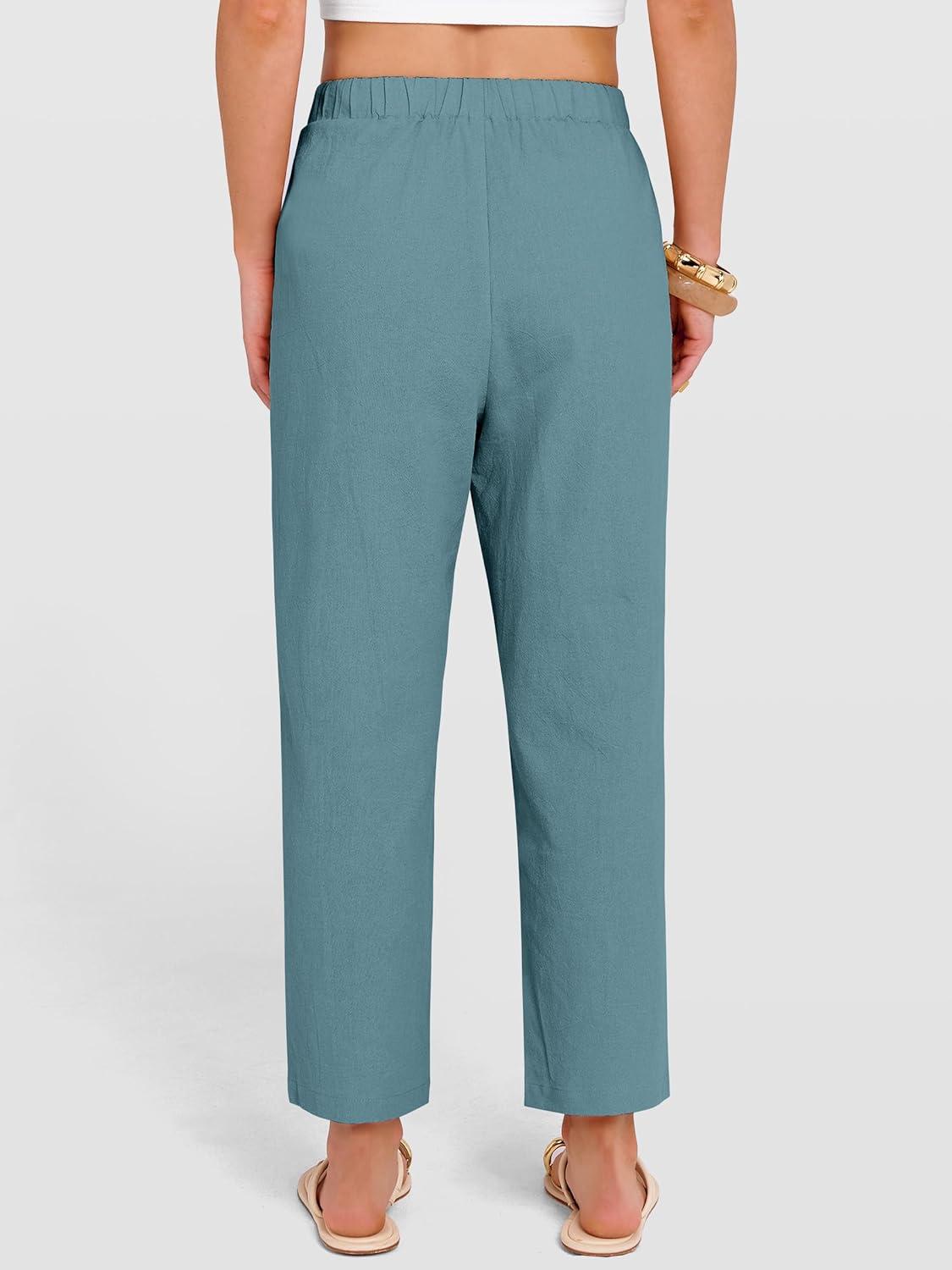 imageANRABESS Womens Cropped Pants 2026 Summer Casual Elastic High Waisted Lounge Capri Tapered Ankle Beach Trousers Work OutfitsLake Bule