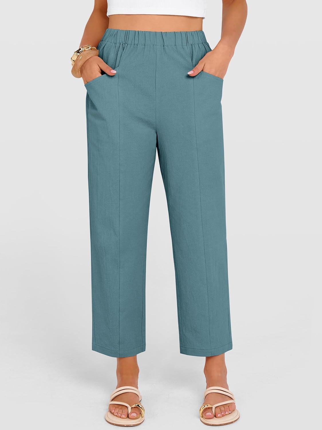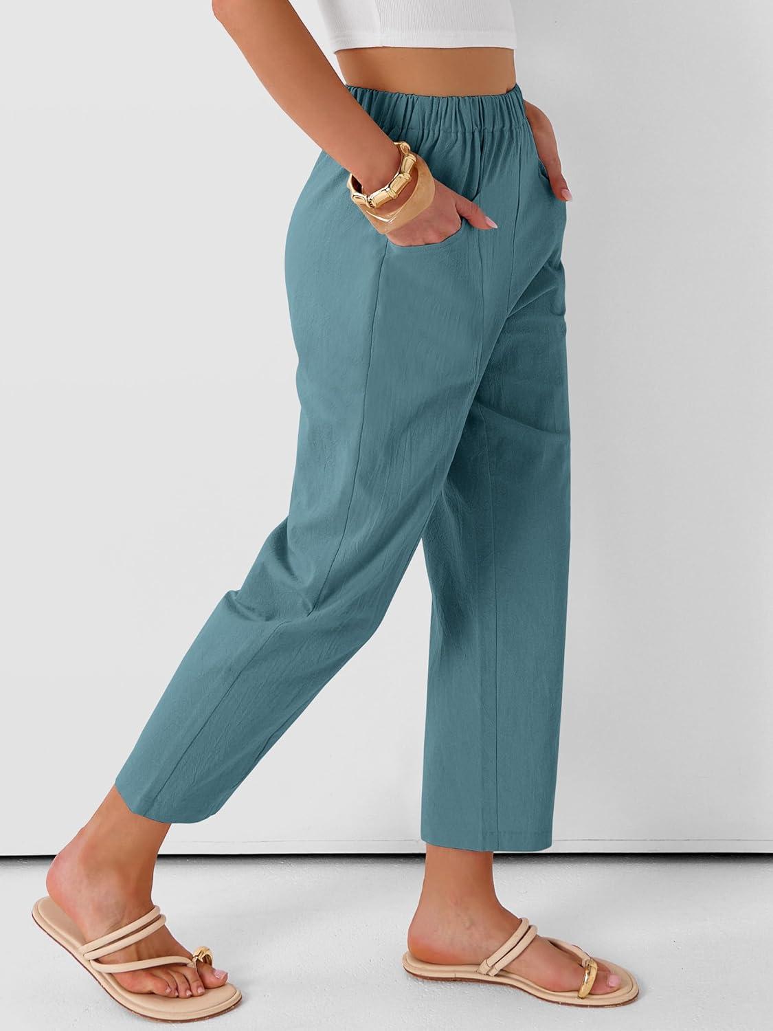 ANRABESS Womens Cropped Pants 2026 Summer Casual Elastic High Waisted Lounge Capri Tapered Ankle Beach Trousers Work Outfits(Lake Bule)