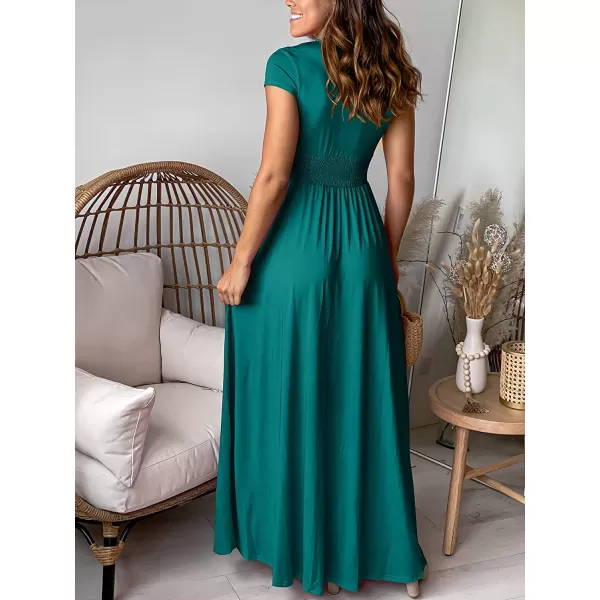 ANRABESS Women’s Deep V Neck Short Sleeve Long Dresses Pleated High Waist Slit Club Party Evening Maxi Dress(Lake)