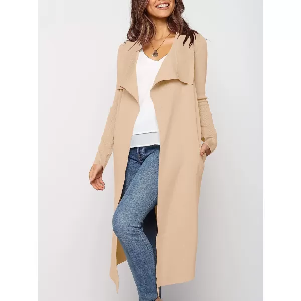imageANRABESS Womens Draped Open Front Long Cardigan Sweater Long Sleeve Irregular Hem with BeltApricot