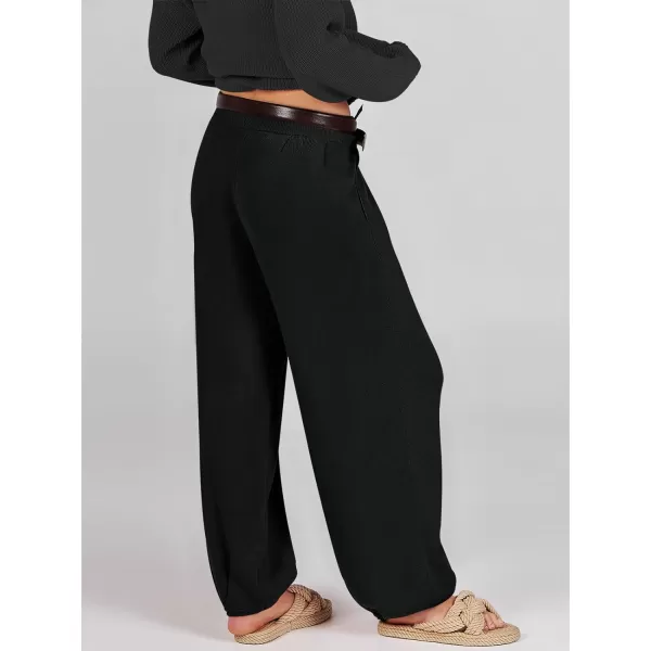 ANRABESS Womens Elastic Waist Soft Knit Solid Wide Leg Sweatpants Sweater Pants Trousers with Pockets(Black)