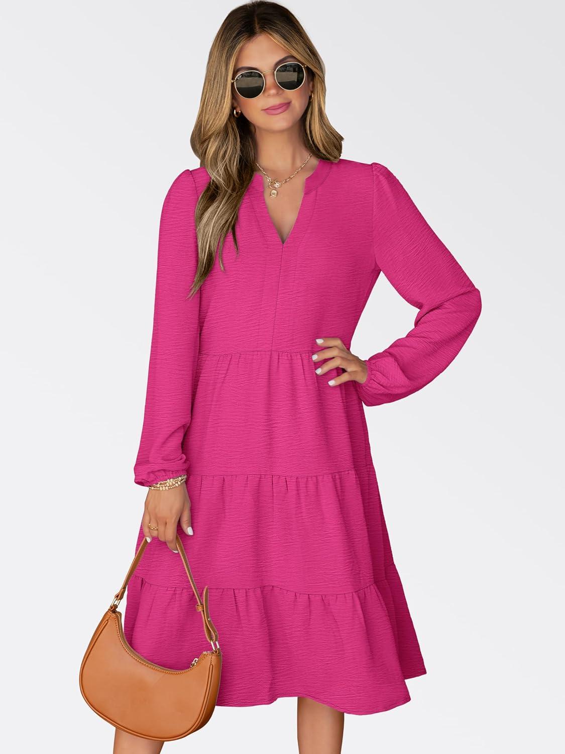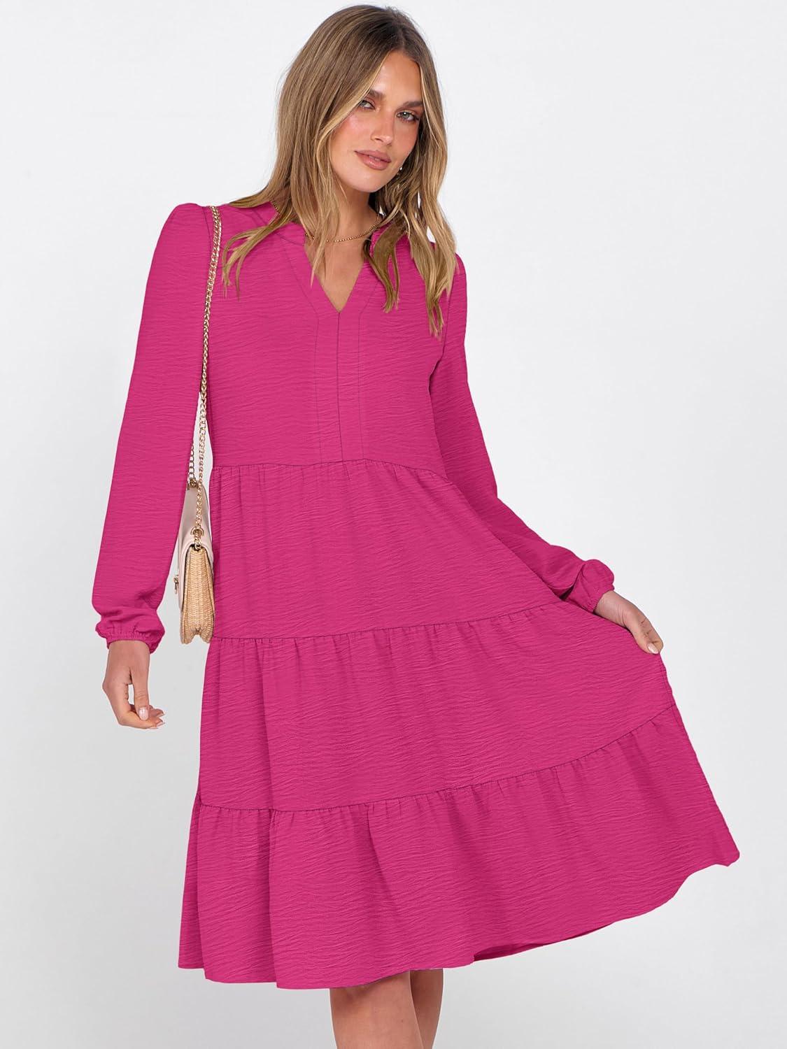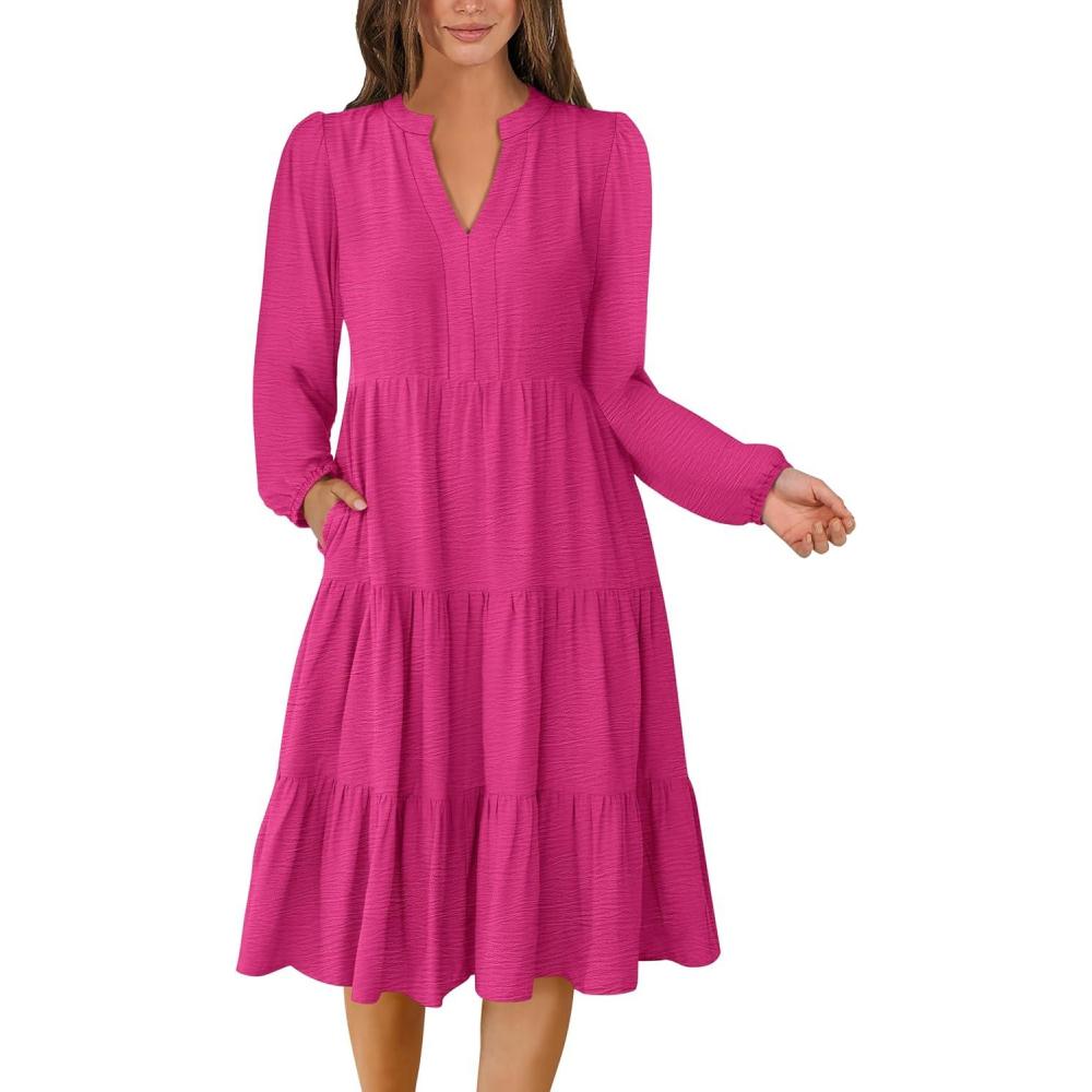 Get up to 50% off on ANRABESS Womens Fall Midi Dresses Long Sleeve V Neck Swing Tiered Work Business Casual 2025 Flowy Beach Vacation Dress(Hot Pink) styles during our spring sale event.