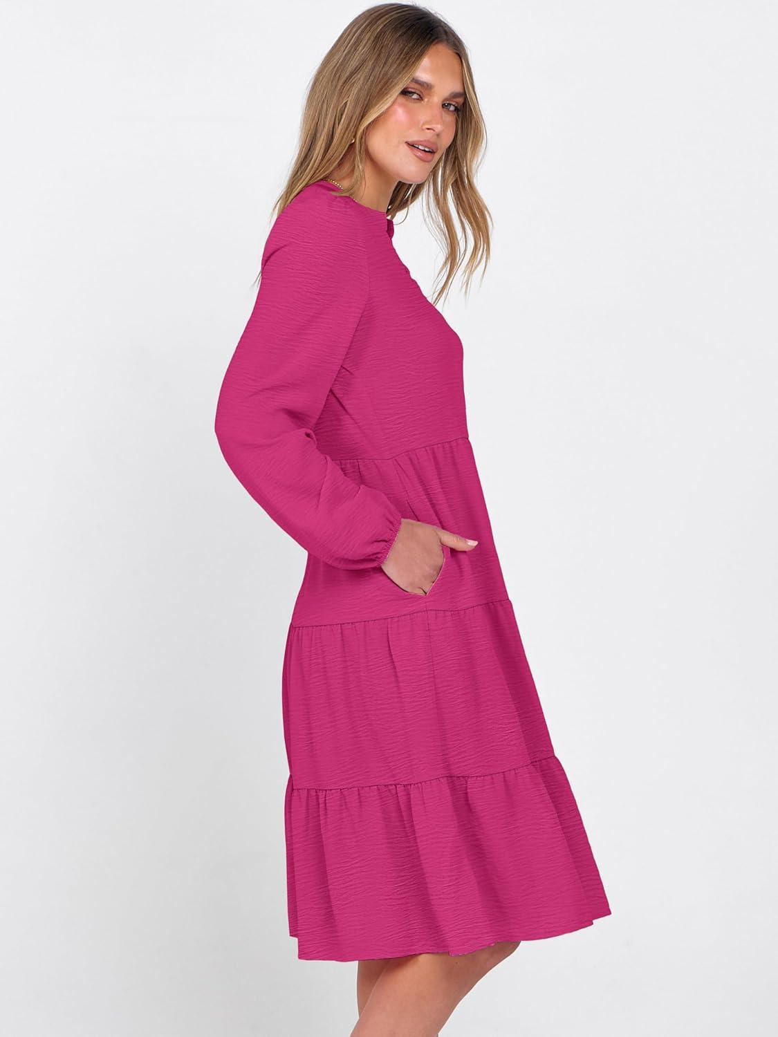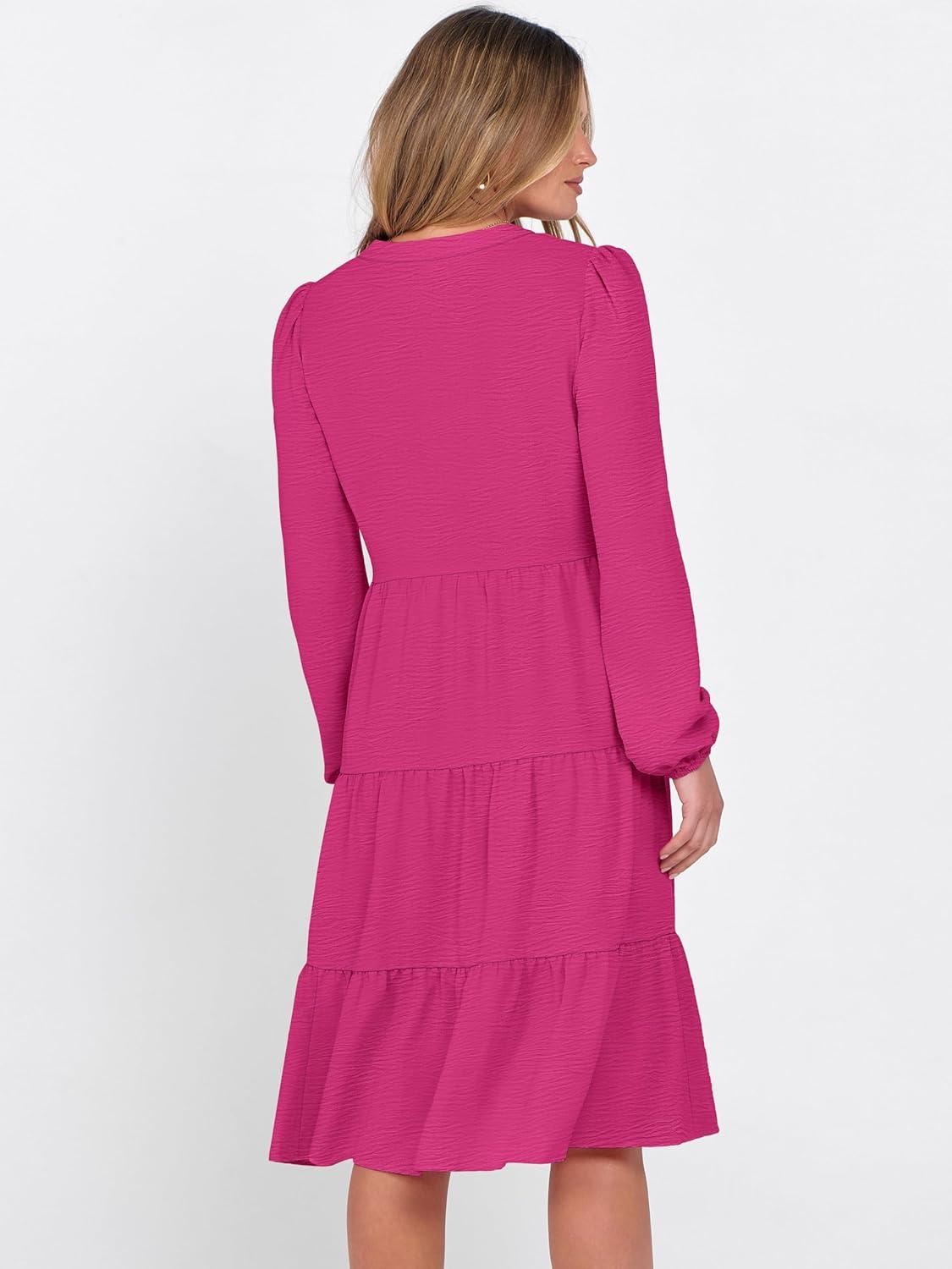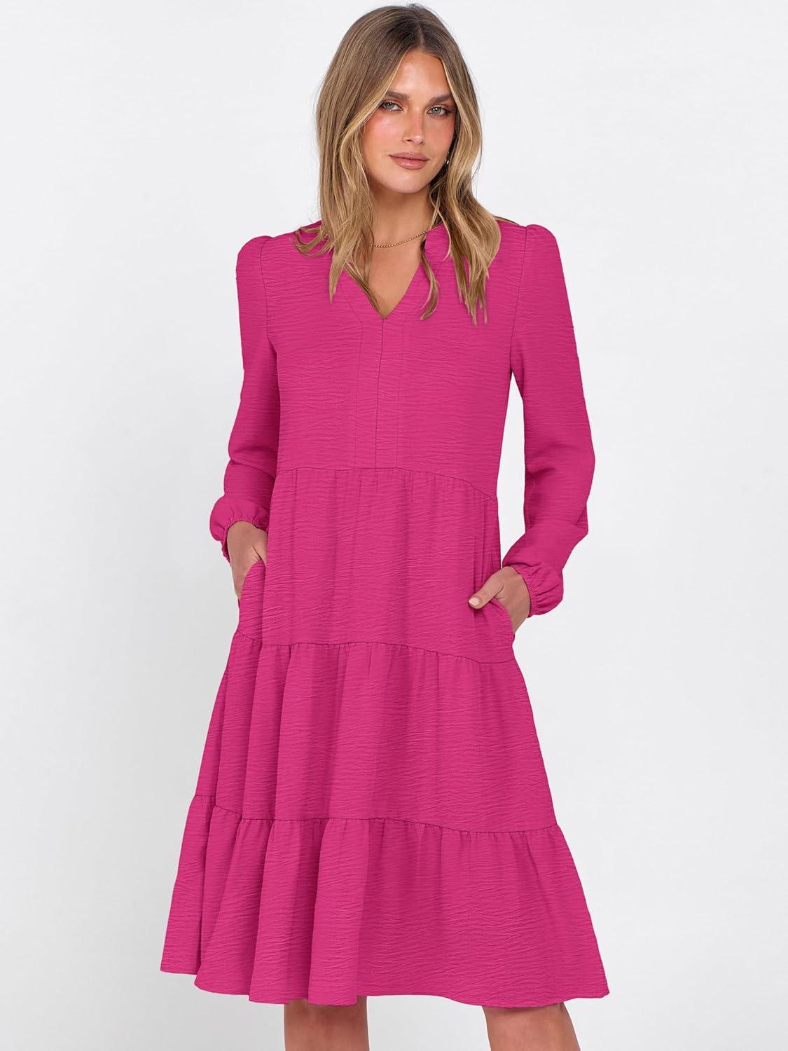 Get up to 50% off on ANRABESS Womens Fall Midi Dresses Long Sleeve V Neck Swing Tiered Work Business Casual 2025 Flowy Beach Vacation Dress(Hot Pink) styles during our spring sale event.