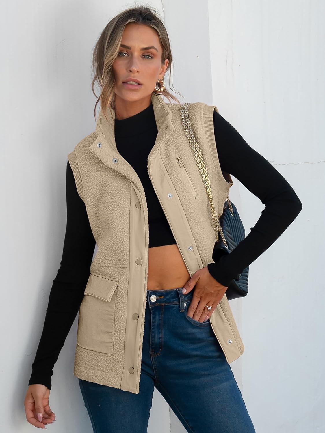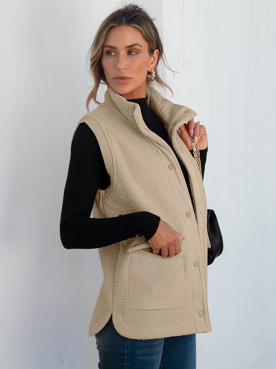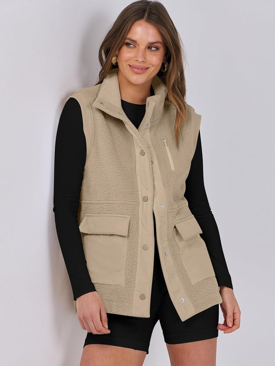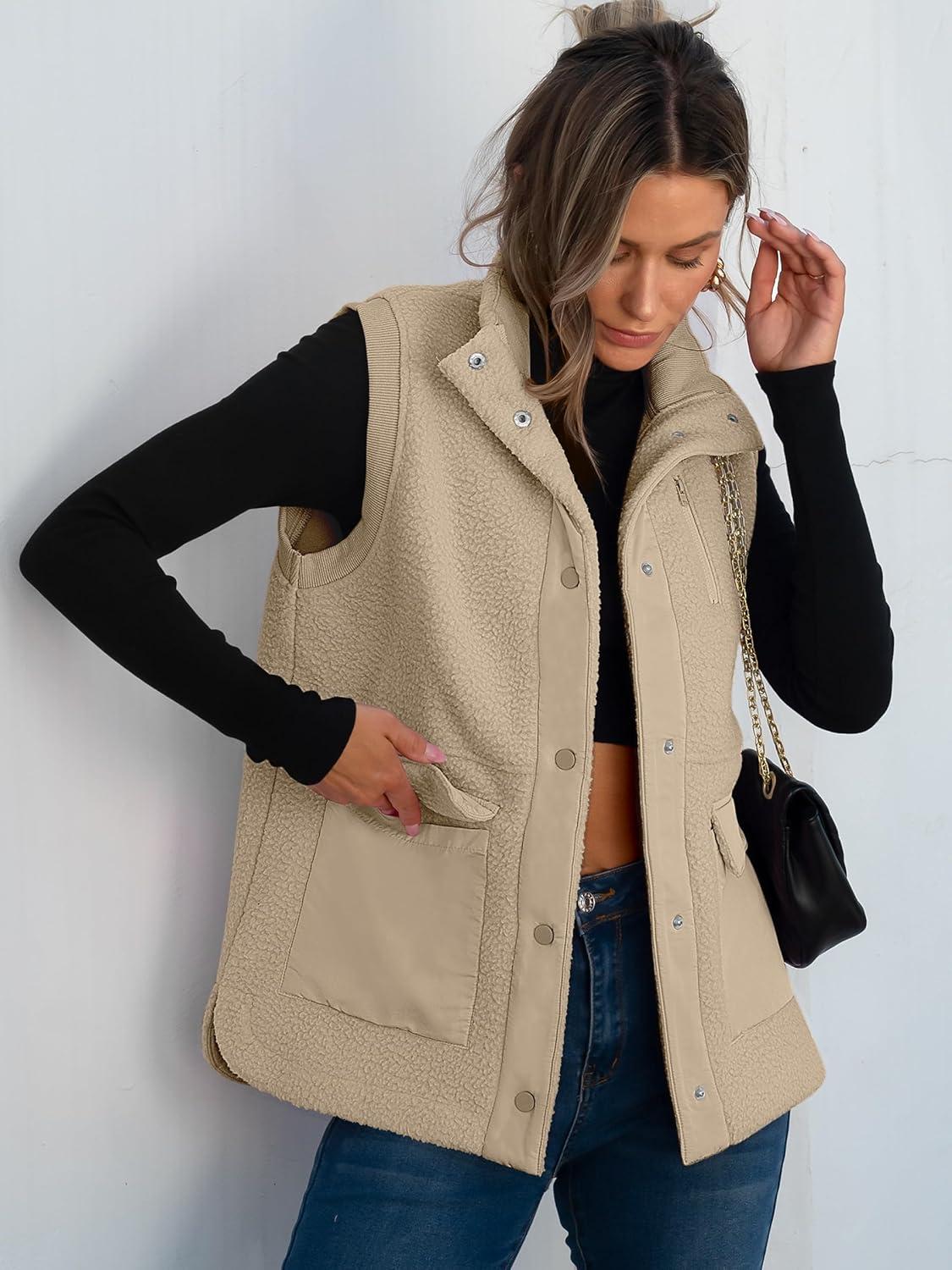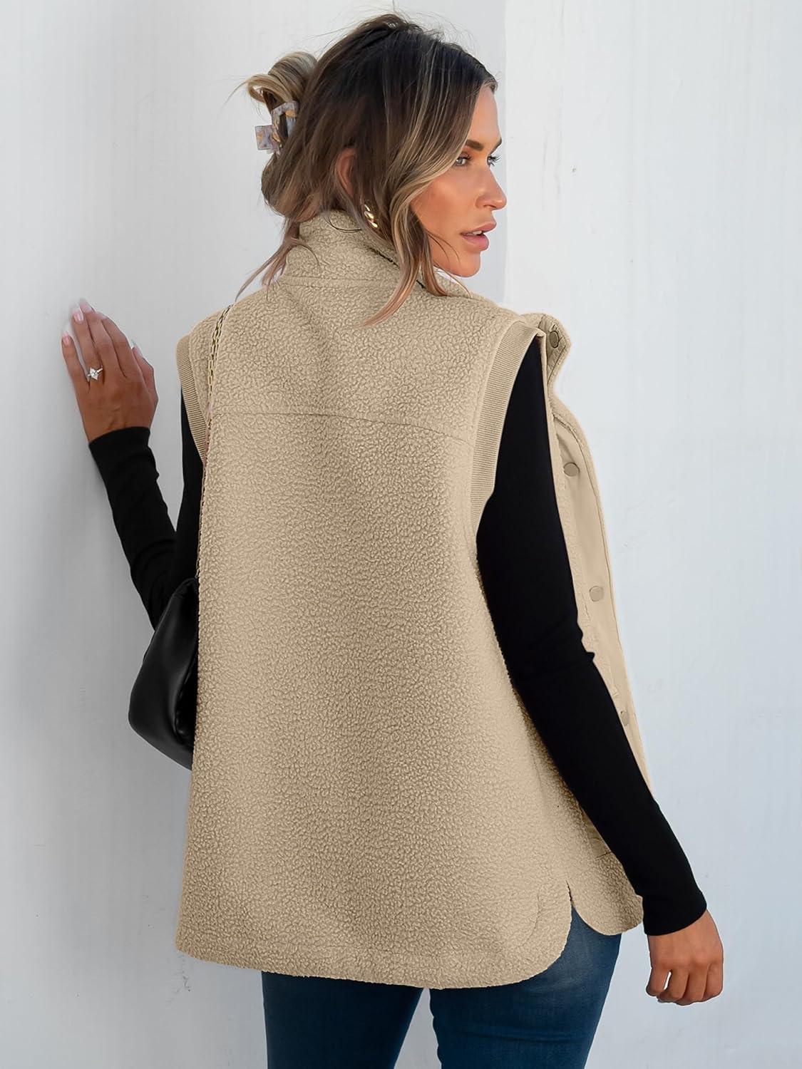 ANRABESS Womens Fleece Vest Loose Warm Button Down Fall Fuzzy Sherpa Jackets Fuzzy Vest With Pockets Winter Outerwear(Beige)