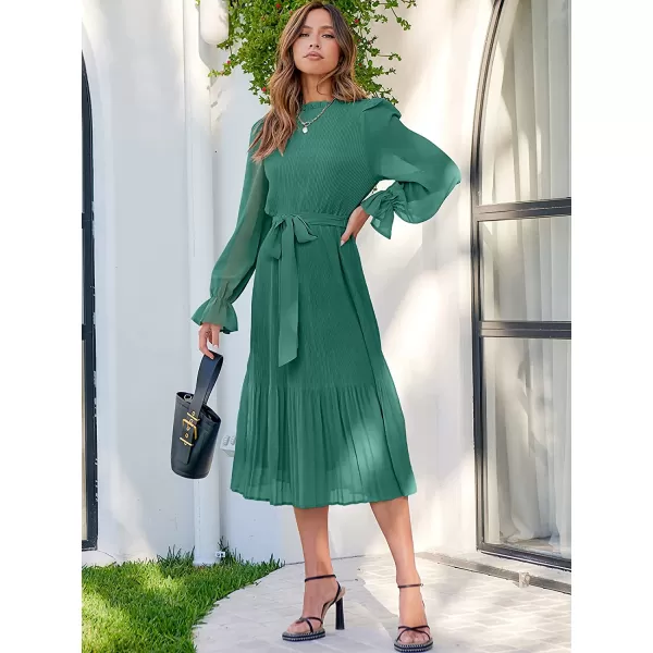 ANRABESS Women’s Floral Midi Dress Puff Long Sleeve Ruffle Trim Smocked A-line Pleated Swing Chiffon Dresses with Belt(Lake)