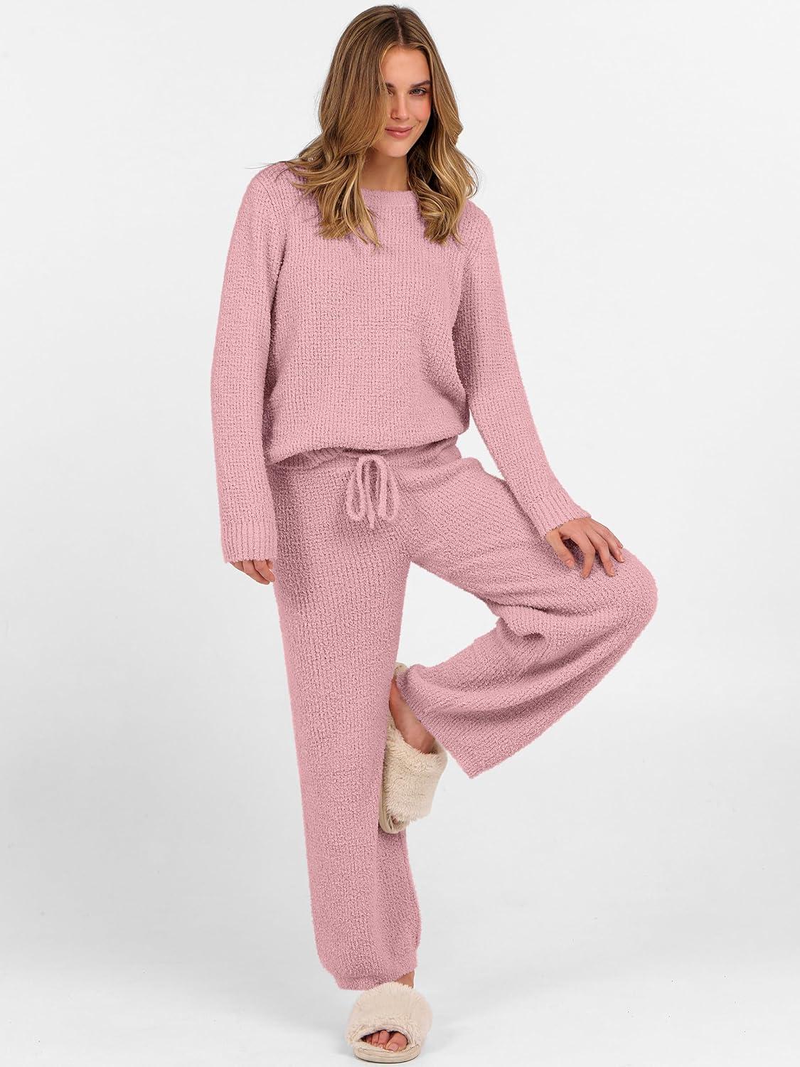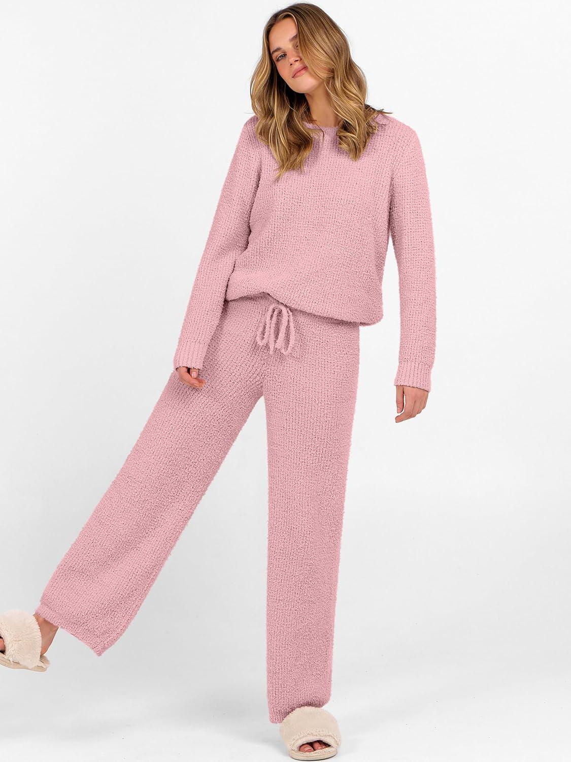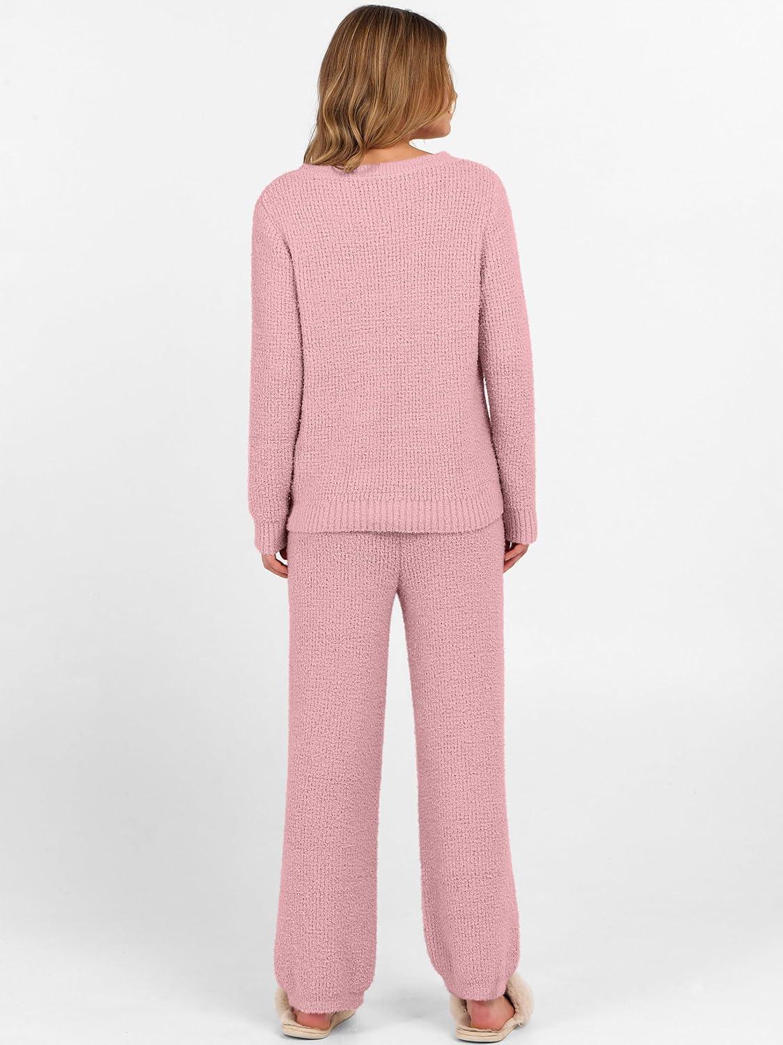ANRABESS Womens Fuzzy Fleece Lounge Pajama Set 2 Piece Outfits Long Sleeve Top Sweater Pants Loungewear Pj Sets 2025 Fall(Blush Pink)