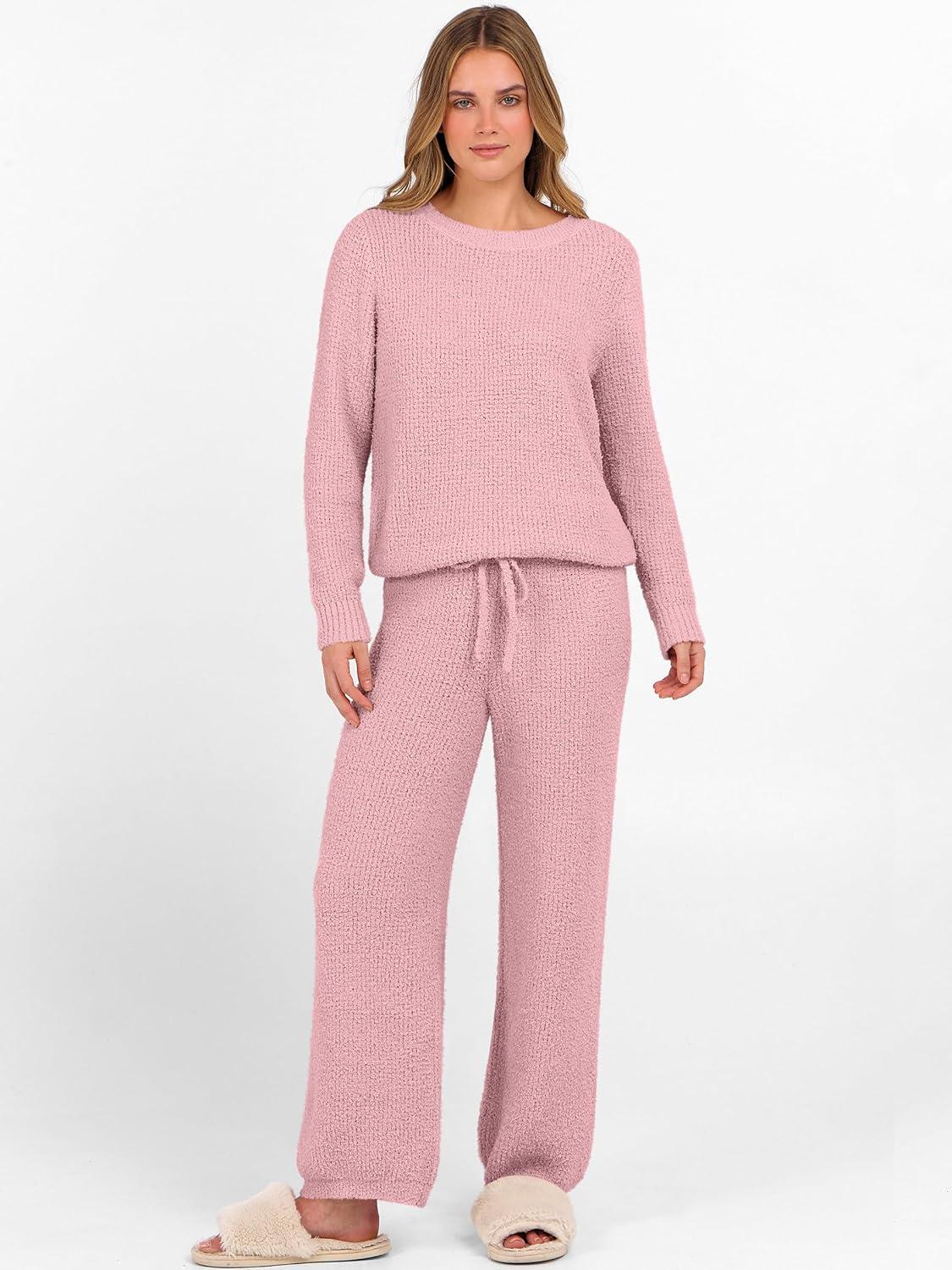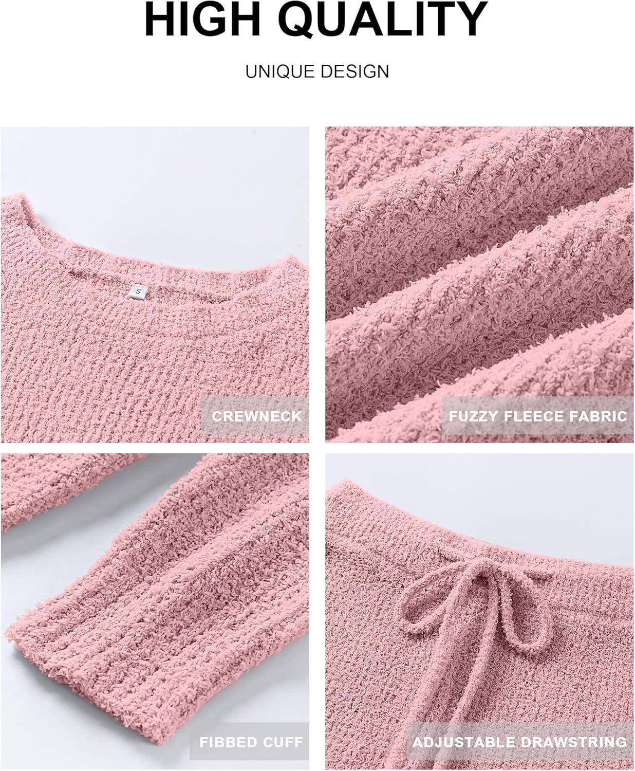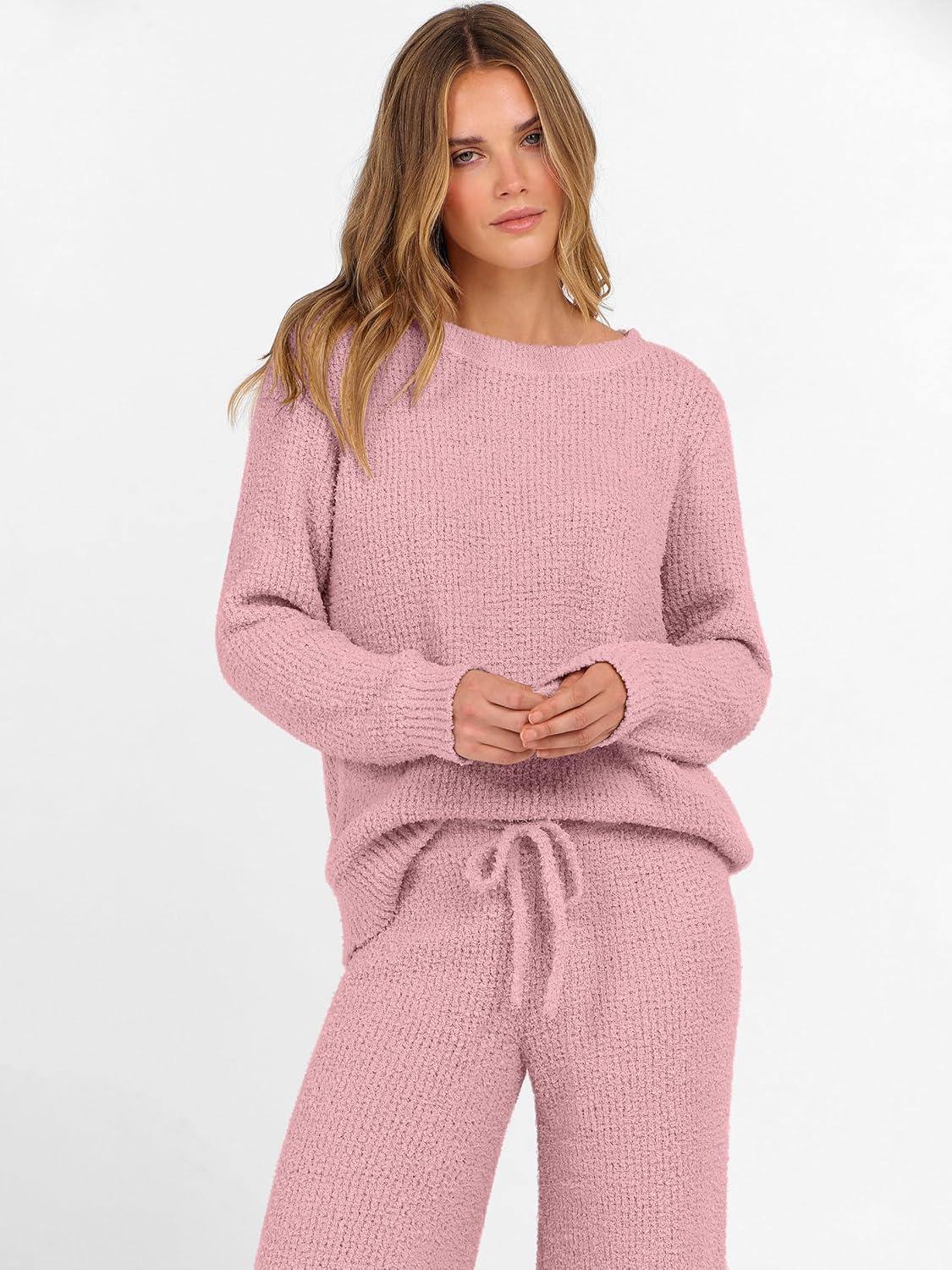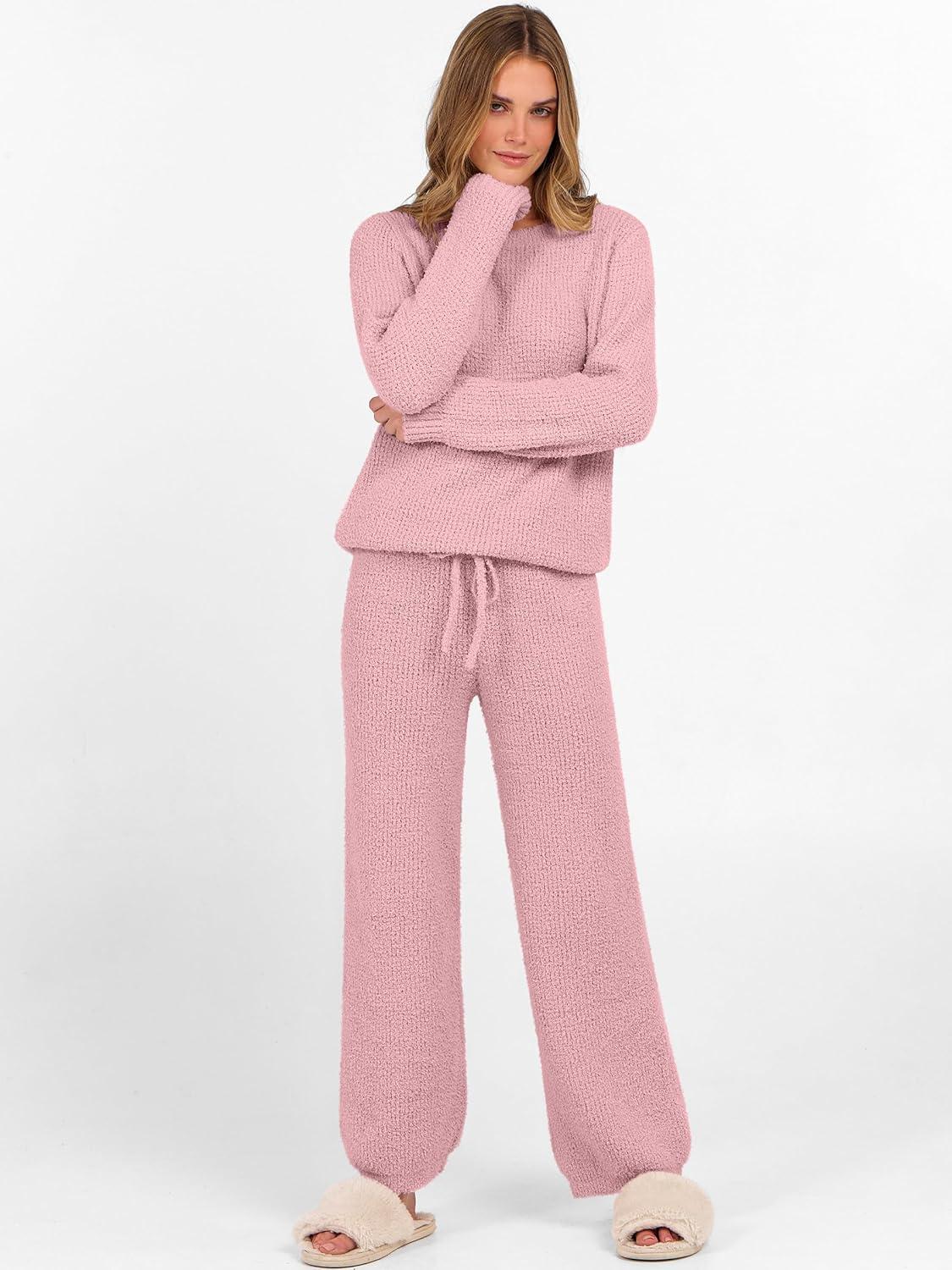 ANRABESS Womens Fuzzy Fleece Lounge Pajama Set 2 Piece Outfits Long Sleeve Top Sweater Pants Loungewear Pj Sets 2025 Fall(Blush Pink)