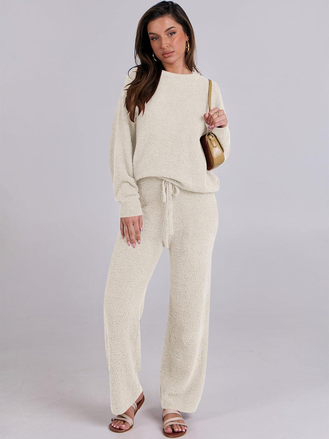 Women’s 2 piece outfits featuring casual style.This pajama sets for women with long sleeve sweater tops and wide leg pants set design,can be worn as stylish outfits or tracksuits.Also great for sleeping,casual wear, or as lounging set.