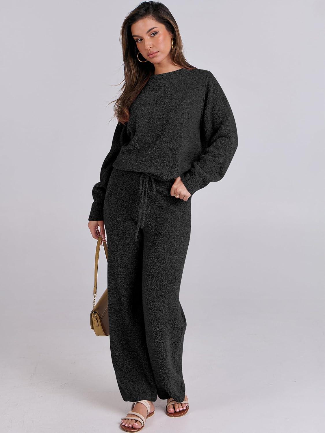 Women’s 2 piece outfits featuring casual style.This pajama sets for women with long sleeve sweater tops and wide leg pants set design,can be worn as stylish outfits or tracksuits.Also great for sleeping,casual wear, or as lounging set.