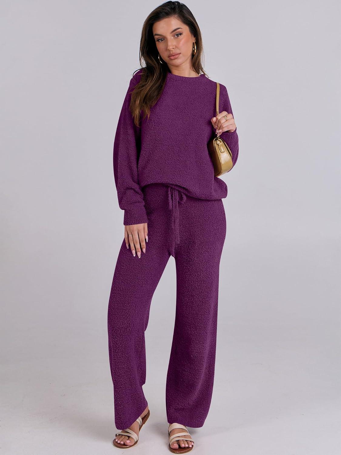 Women’s 2 piece outfits featuring casual style.This pajama sets for women with long sleeve sweater tops and wide leg pants set design,can be worn as stylish outfits or tracksuits.Also great for sleeping,casual wear, or as lounging set.