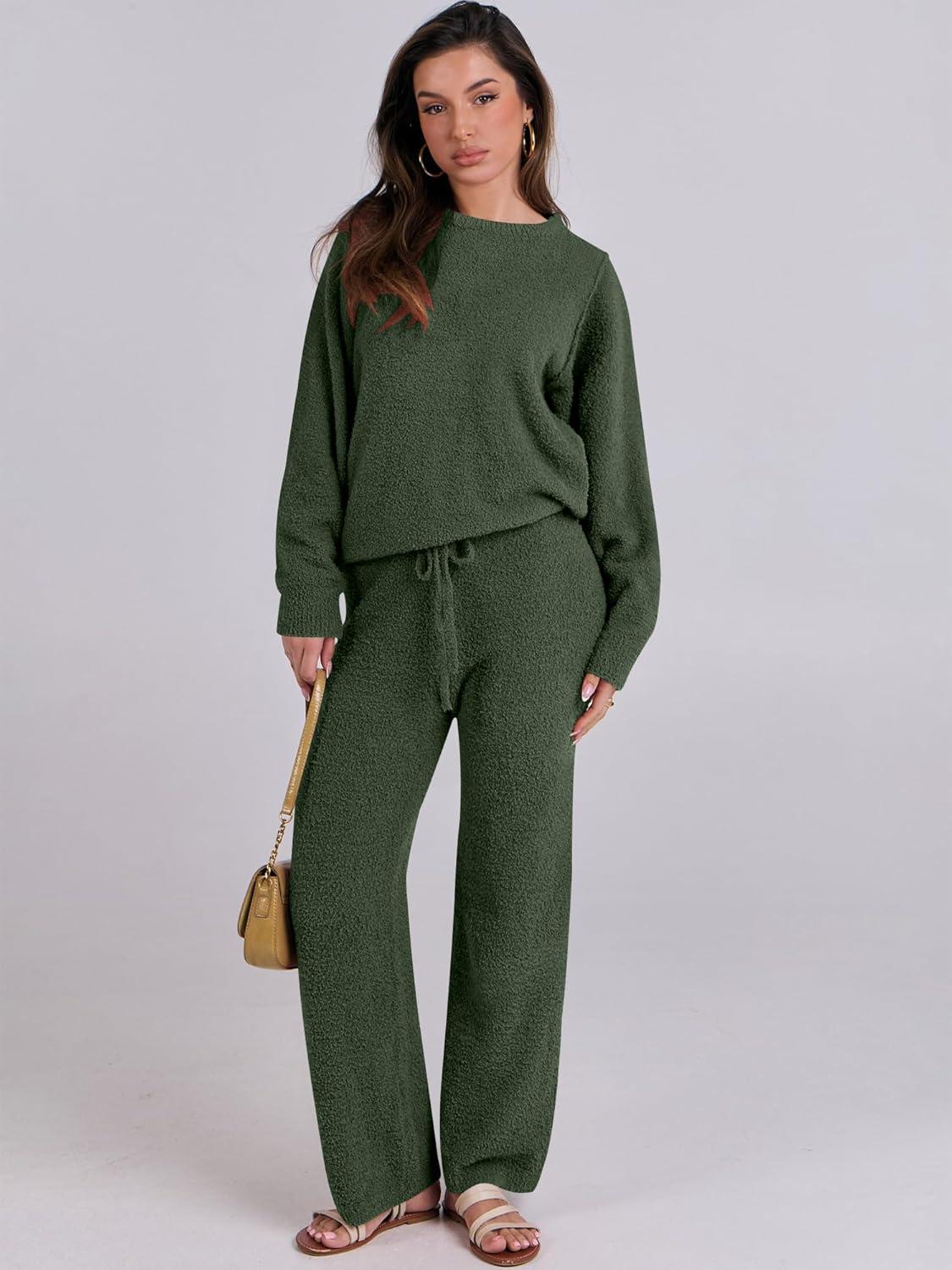 Women’s 2 piece outfits featuring casual style.This pajama sets for women with long sleeve sweater tops and wide leg pants set design,can be worn as stylish outfits or tracksuits.Also great for sleeping,casual wear, or as lounging set.