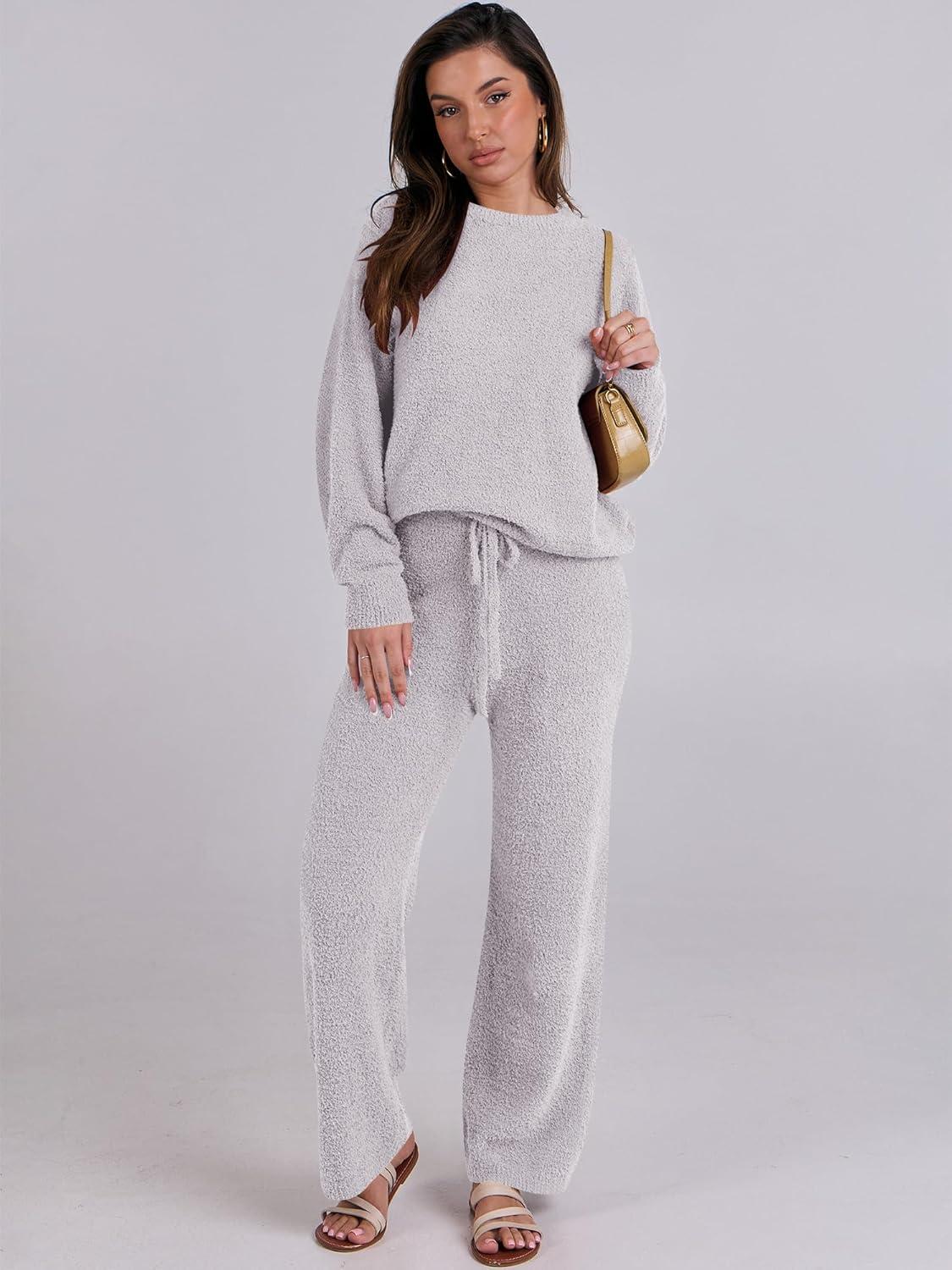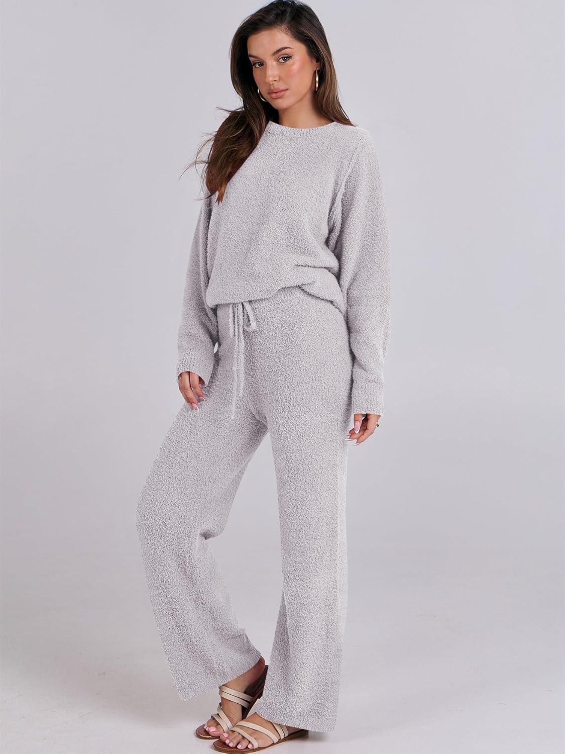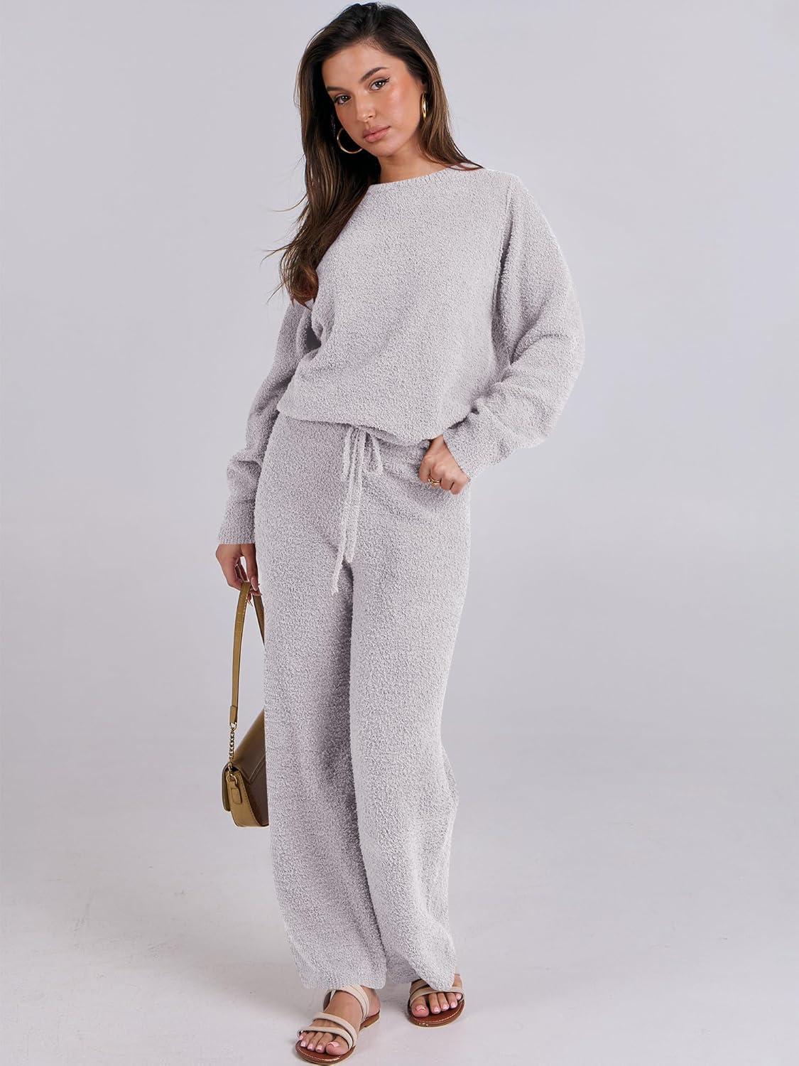 Women’s 2 piece outfits featuring casual style.This pajama sets for women with long sleeve sweater tops and wide leg pants set design,can be worn as stylish outfits or tracksuits.Also great for sleeping,casual wear, or as lounging set.