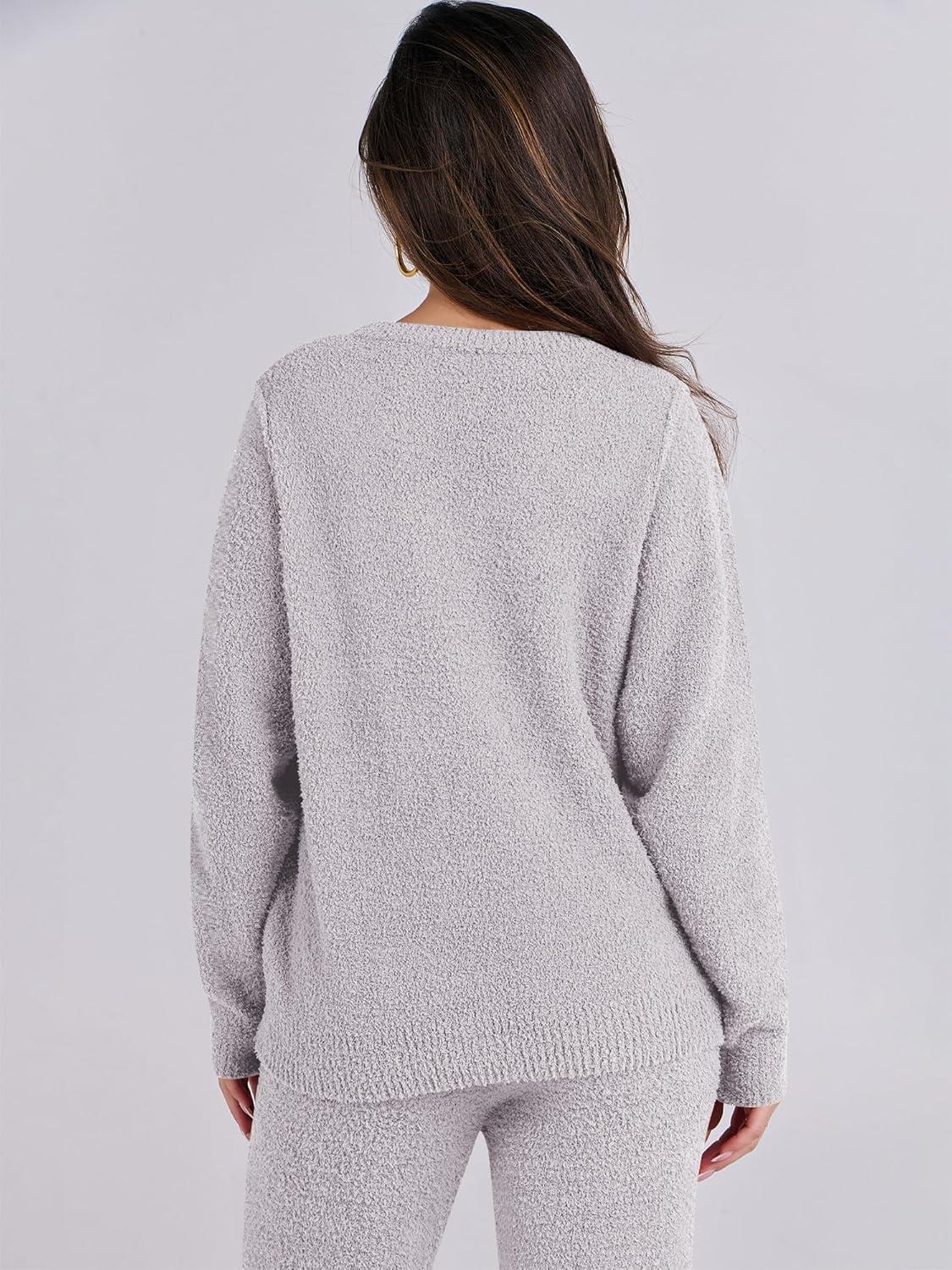 Be the first to review “ANRABESS Women’s Fuzzy Fleece Pajama Sets 2 Piece Outfits Long Sleeve Top Wide Leg Pants Lounge Matching Set 2025 Fall Winter(Purple Grey)”