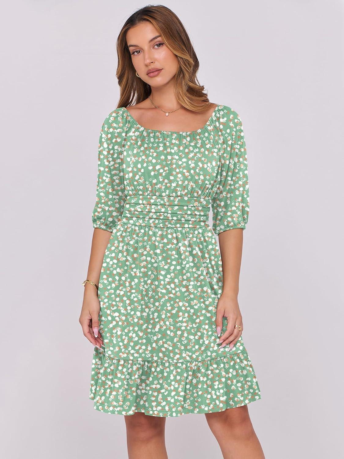 Be the first to review “ANRABESS Womens Half Sleeve Mini Dress 2025 Fall Square Neck Casual Flowy Wedding Guest Dresses Summer Beach Vacation Outfits(White Brown Dot)”