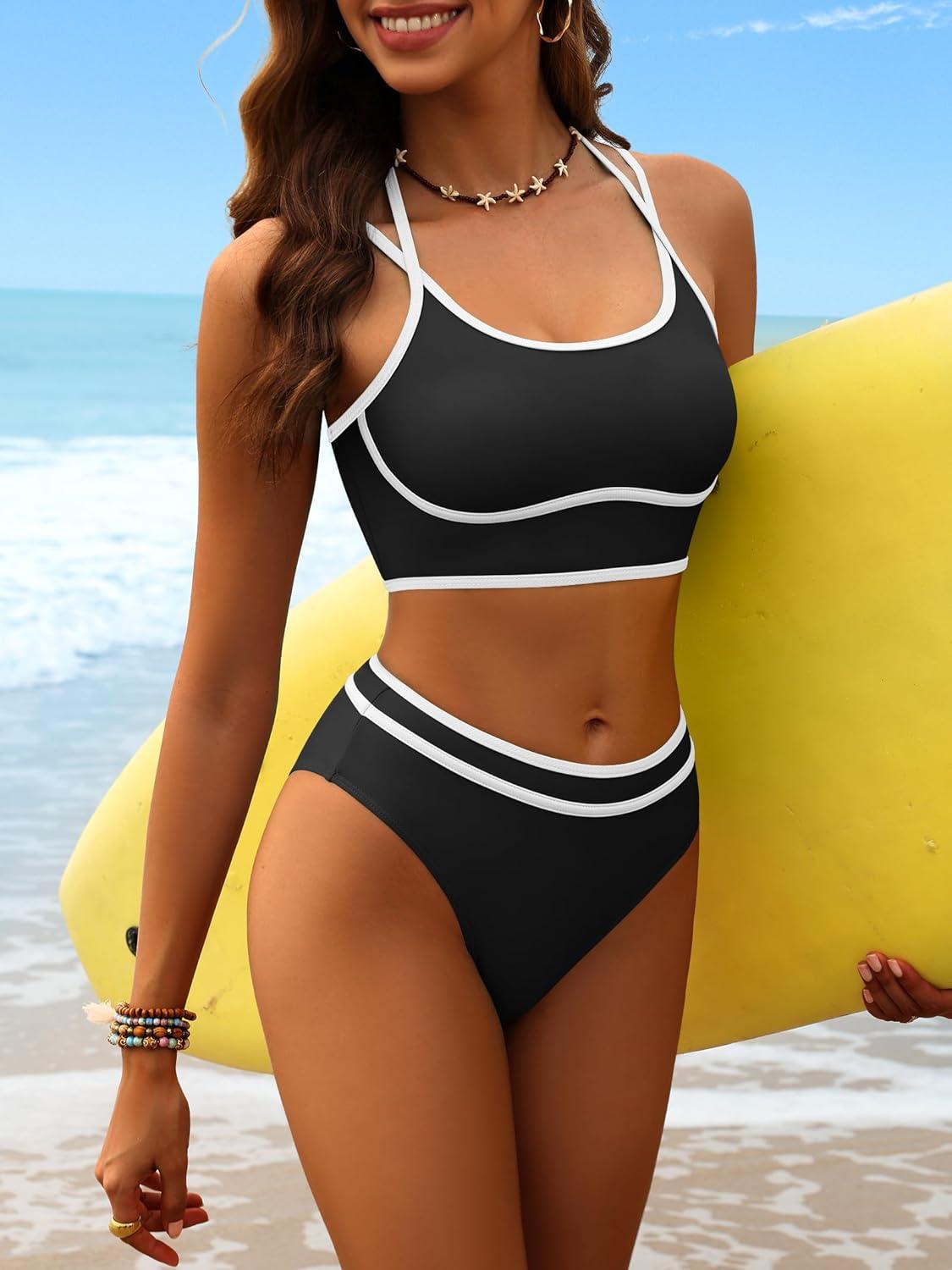 Be the first to review “ANRABESS Womens Halter Bikini Sets Color Block Two Piece Swimsuits High Waisted Bathing Suits Summer Sporty Cheeky Swimwear(Black)”
