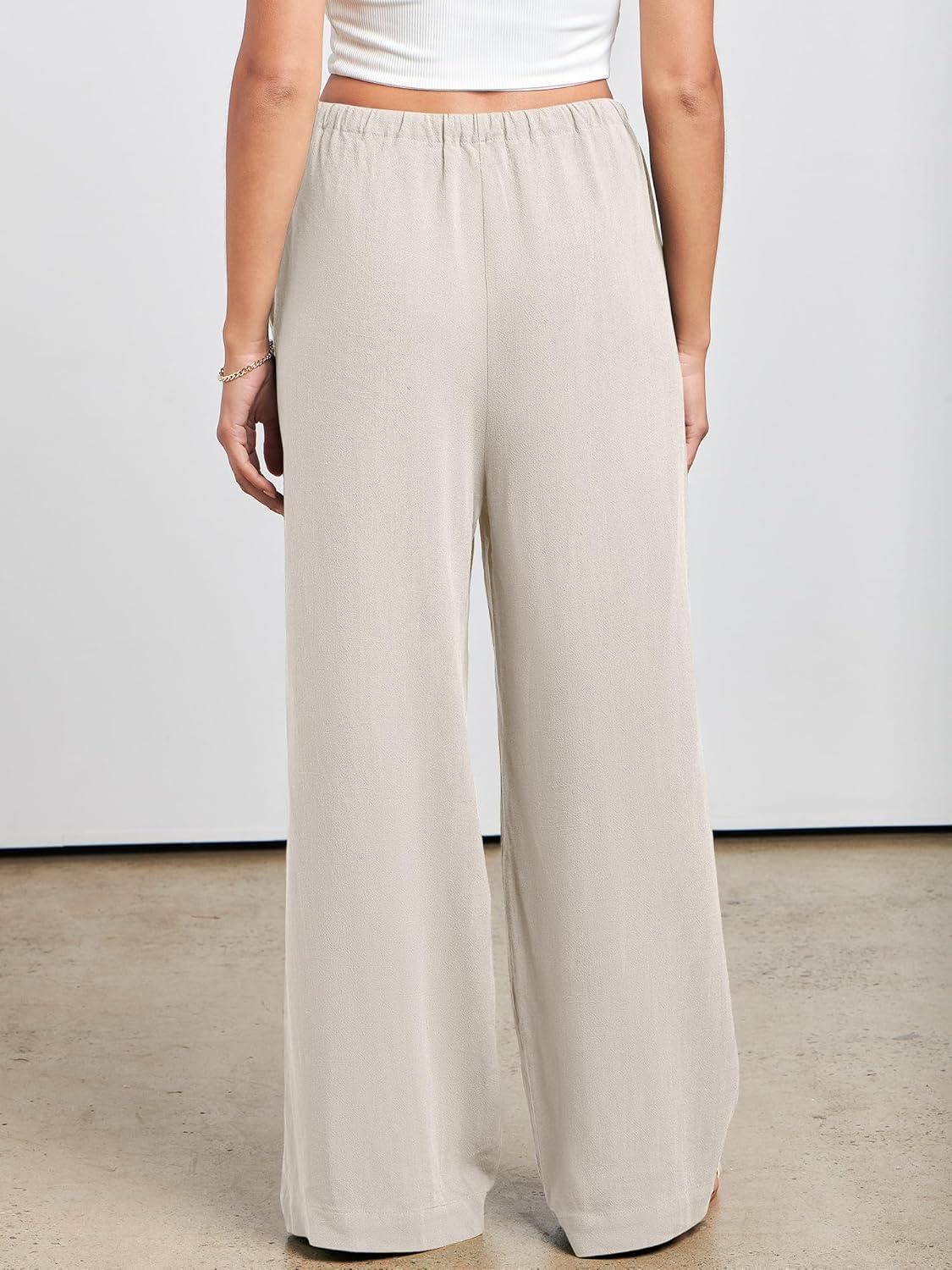 ANRABESS Womens Linen Palazzo Pants Summer Flowy Wide Leg Drawstring Casual Trousers with Pockets Beach Vacation Outfits(Apricot)