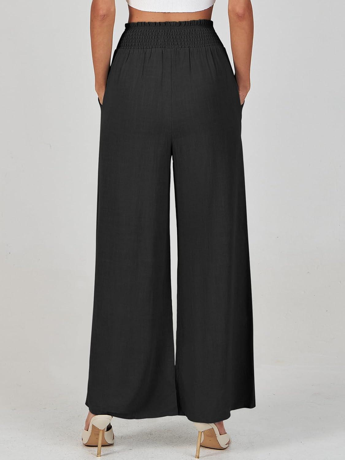 ANRABESS Women Linen Palazzo Pants Summer Casual Loose High Waist Wide Leg Long Lounge Pant Trousers with Pocket