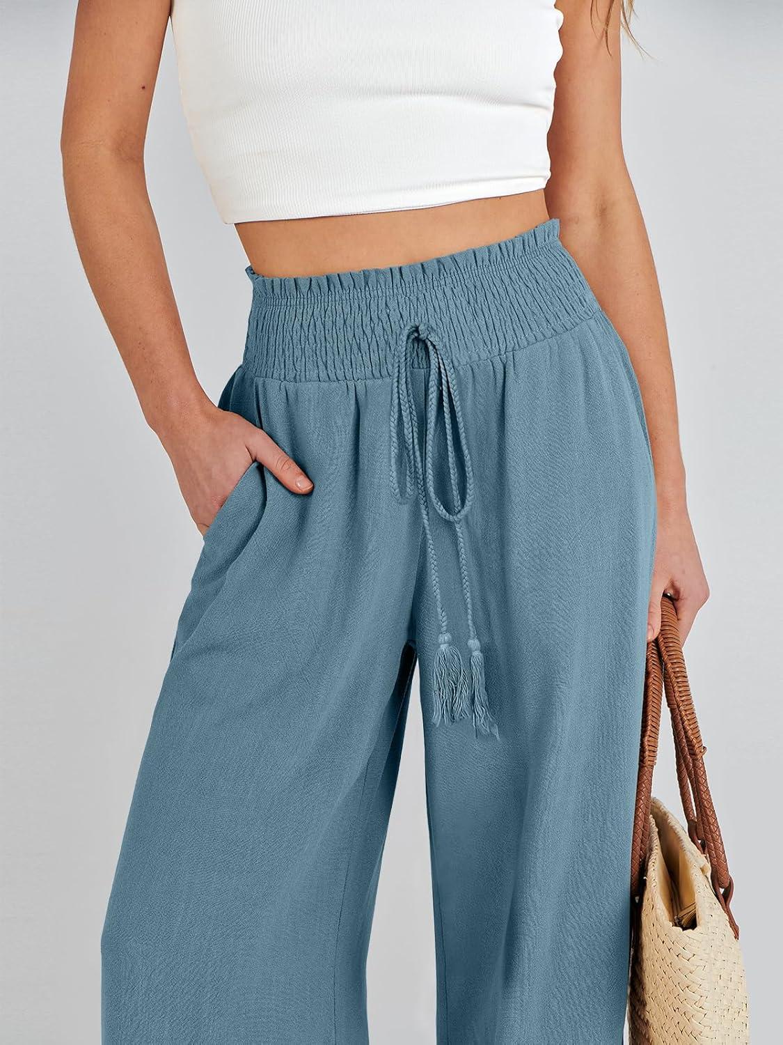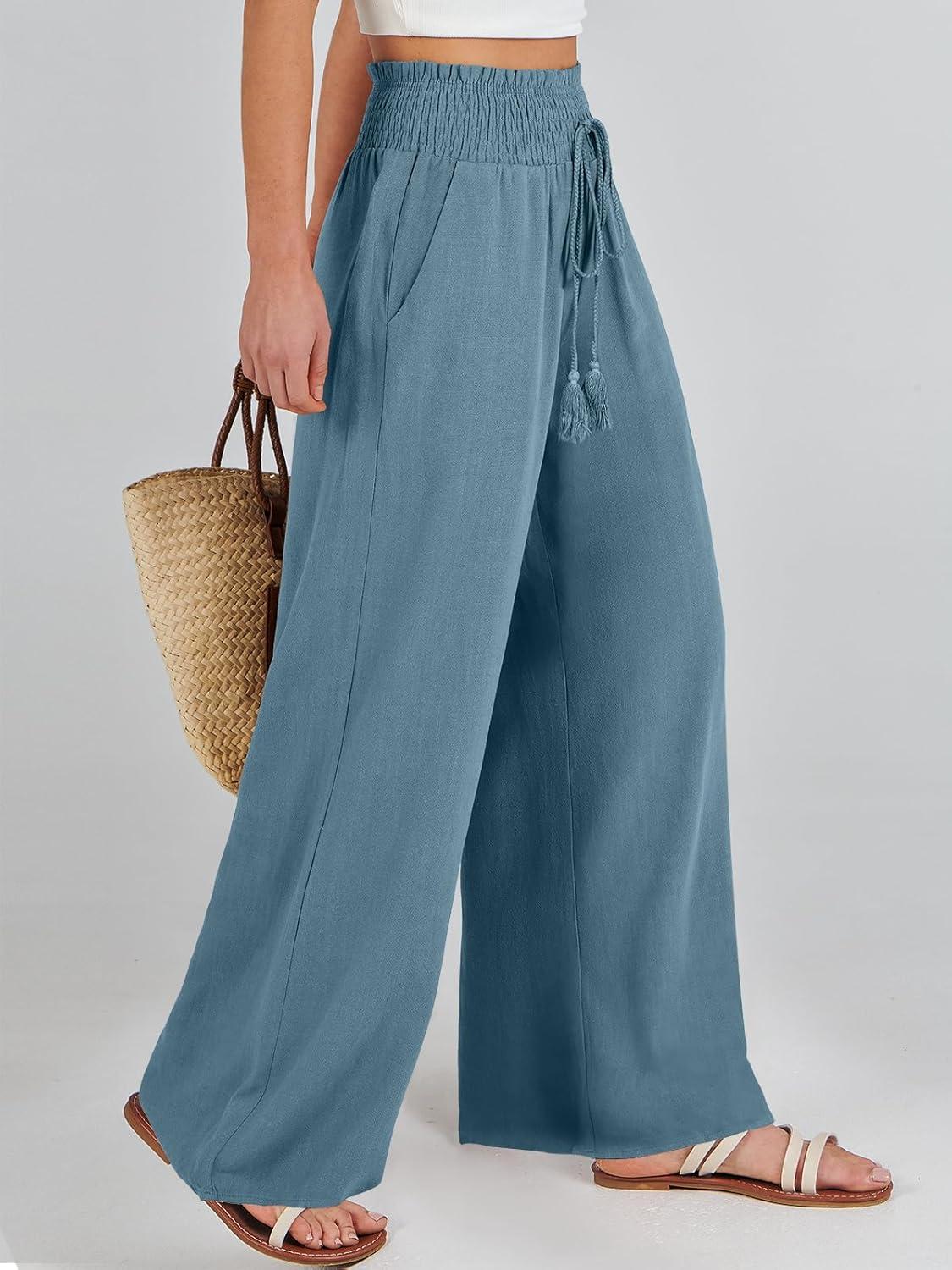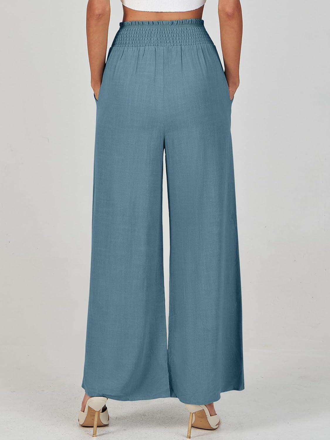 ANRABESS Women Linen Palazzo Pants Summer Casual Loose High Waist Wide Leg Long Lounge Pant Trousers with Pocket
